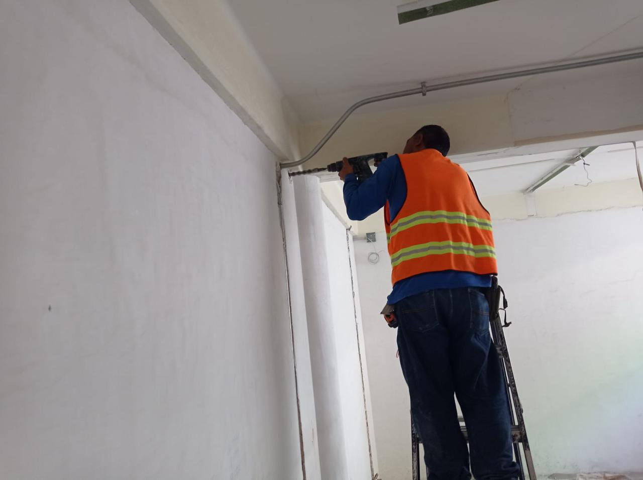 En ese sector se están colocando plafones por secciones, levantando muros de block y se efectúa una limpieza integral de la azotea.