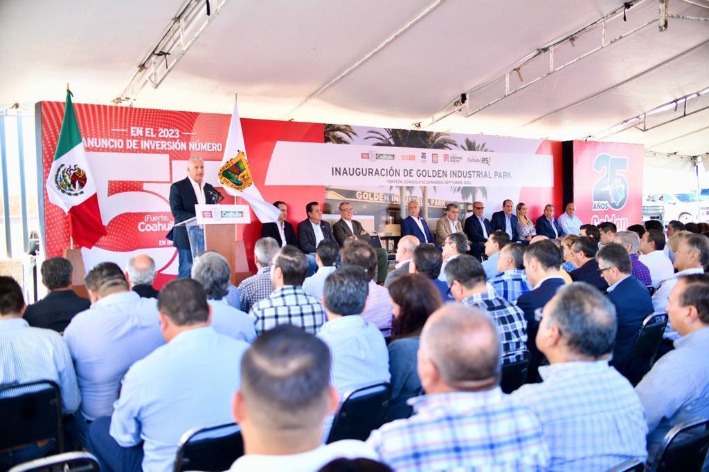 El alcalde de Torreón, Román Alberto Cepeda González y el gobernador de Coahuila, Miguel Ángel Riquelme Solís, inauguraron las instalaciones del Golden Industrial Park, el cual cuenta con naves industriales para recibir inversión extranjera y nacional.