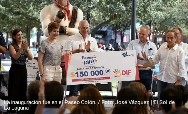 En el evento Eduardo Tricio Haro hizo entrega de un cheque donativo por parte de Fundación LALA a la señora Selina Bremer de Cepeda, presidenta honoraria del DIF Torreón, el cual será destinado a la nueva Casa Cuna de este organismo.