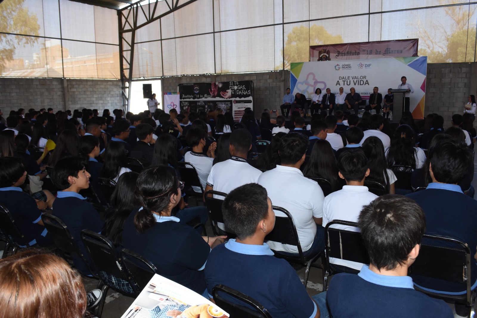 +DIF Gómez Palacio realiza conversatorio con 800 alumnos de la preparatoria 18 de Marzo