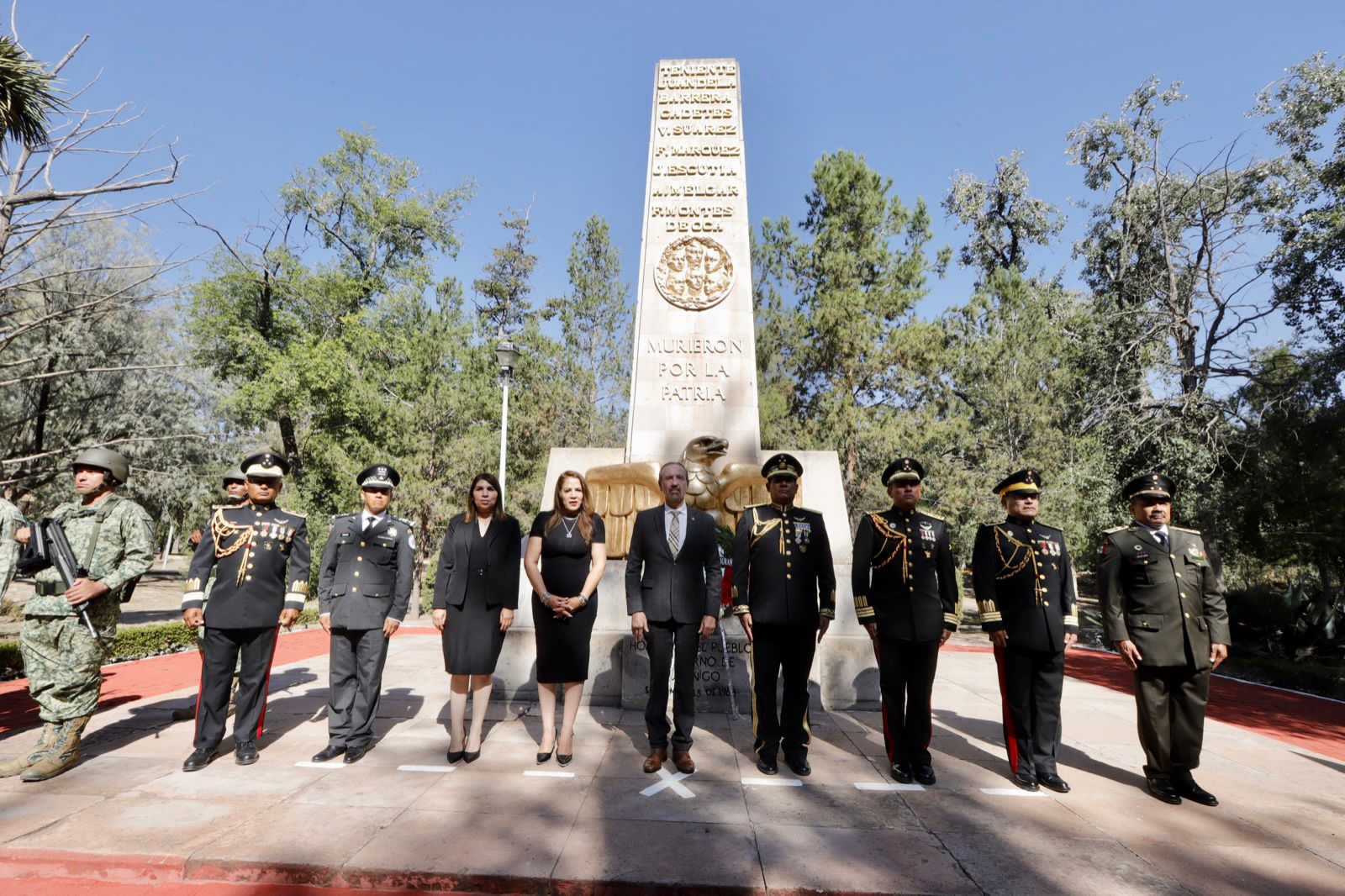 En representación del Mandatario Estatal, el secretario general de Gobierno, Héctor Vela Valenzuela encabezó el acto cívicos, donde se depósito una ofrenda y se montó guardia de honor en el monumento a los heroicos cadetes.