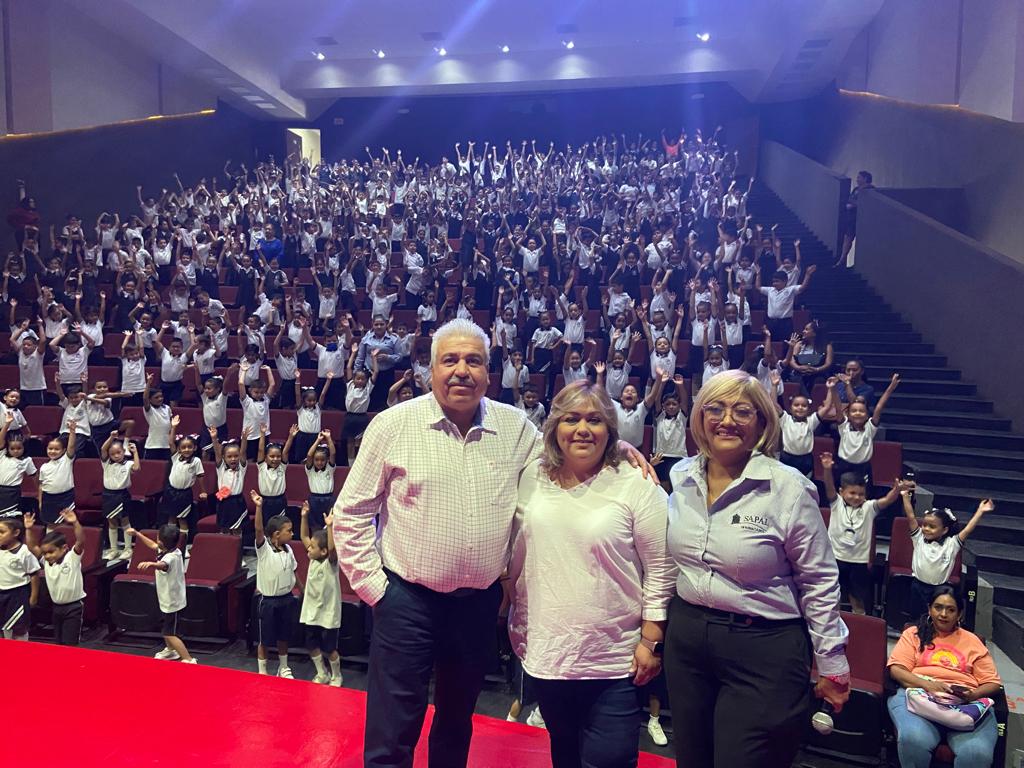 Lerdo, 14 de septiembre de 2023. – El Sistema de Agua Potable y Alcantarillado (SAPAL), en colaboración con la Comisión de Agua en el Estado (CAED), llevaron a cabo la representación de obra «De la Conciencia a la Acción» en el Teatro Hermila Galindo, dirigida a 420 estudiantes de la Primaria Felicitas Cordero Villegas.