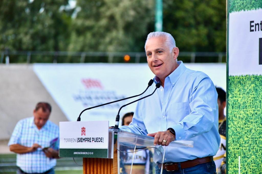 “La Unidad Deportiva Torreón deja de ser gris y empieza una nueva era, este nuevo campo es la punta de lanza para seguir pensando en el futuro de nuestros niños y jóvenes”, finalizó.