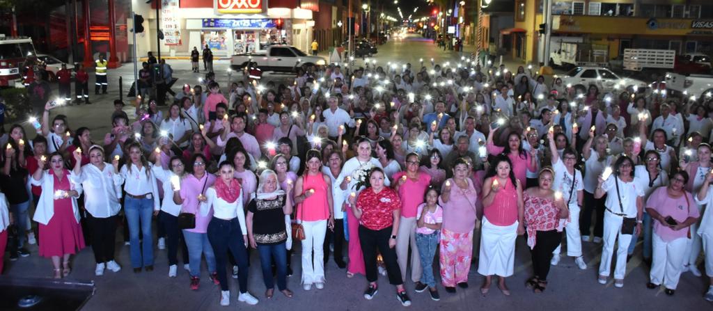 Más de 150 mujeres con vela en mano, acompañadas de amigos y familiares, caminaron por el Paseo Independencia desde la Plaza de Armas hasta la explanada de la Presidencia Municipal, buscando dar visibilidad a aquellas mujeres que están en este momento luchando contra el cáncer de mama así como aquellas que desafortunadamente perdieron la batalla.