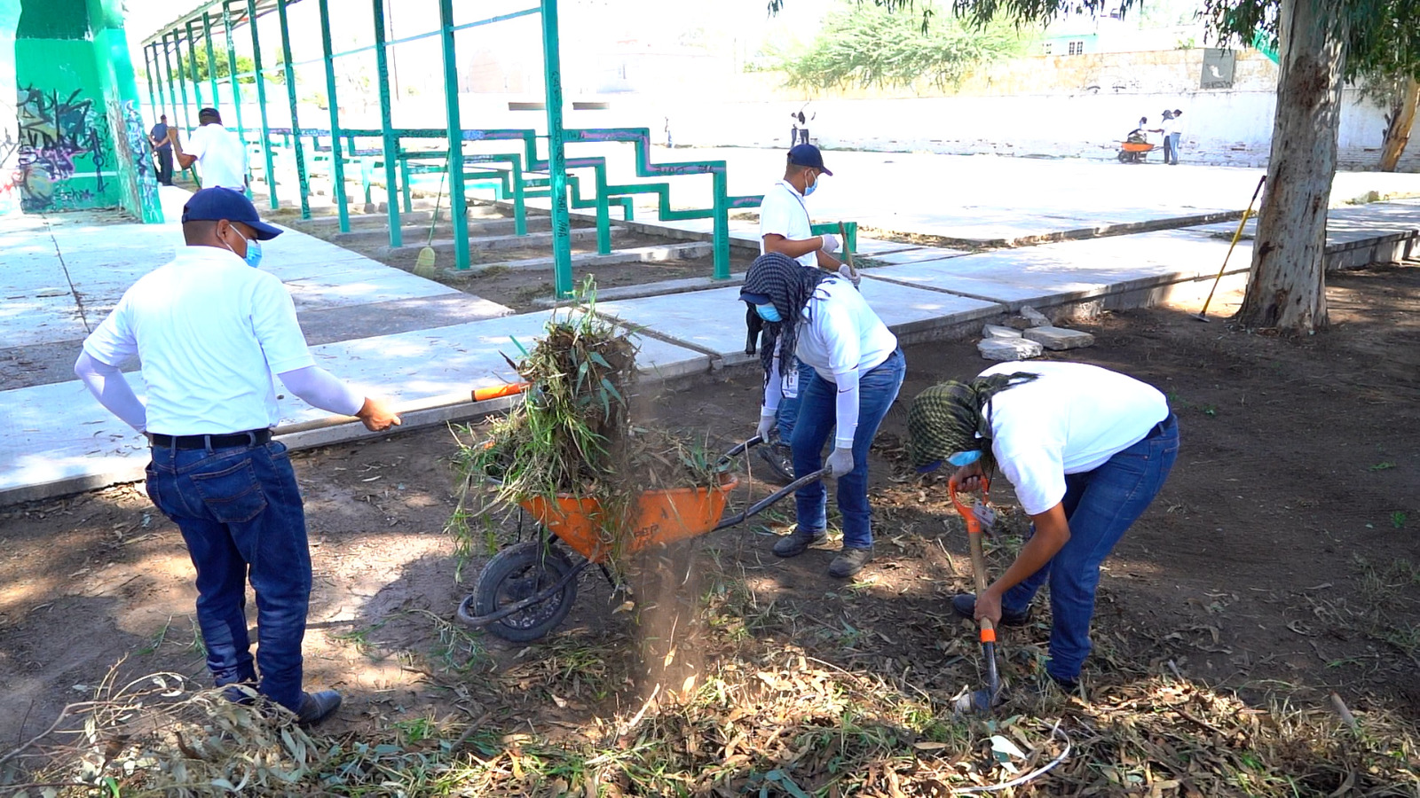 23 cadetes de la Academia de Policía, acompañados de 4 instructores de la misma, llevaron a cabo trabajos de distinta naturaleza para rescatar la Unidad Deportiva “Choque Galindo” de la colonia Héctor Mayagoitia.