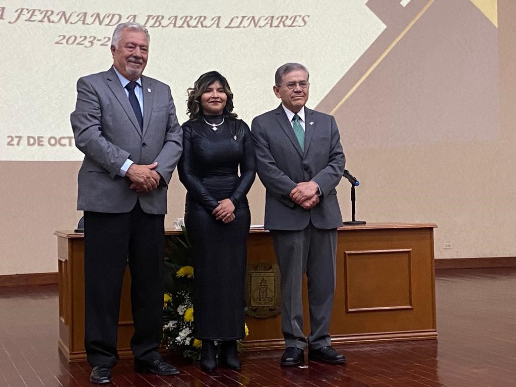MONCLOVA, Coahuila. 27 de octubre de 2023. El rector de la Universidad Autónoma de Coahuila, Salvador Hernández Vélez, tomó protesta a la Dra. María Fernanda Ibarra Linares, quien resultó reelecta para un segundo período como directora de la Escuela de Bachilleres “Prof. Ladislao Farías Campos” de la Unidad Norte (2023-2026).