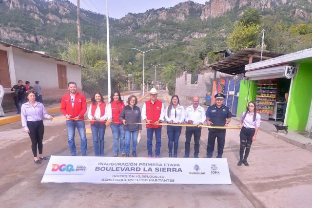 Le vamos a meter mano a los municipios pequeños con buenos servicios y mejor calidad de vida, expresó el Mandatario Estatal al recorrer la cabecera de Topia, donde entregó la primera etapa del bulevar La Sierra con una inversión de 5 millones 561 pesos, que permitirá a sus habitantes tener una calle más amplia, segura e iluminada para transitar, además de llevar apoyos como tinacos para almacenamiento de agua, una patrulla y equipamiento para fortalecer la Dirección Municipal de Seguridad de dicho lugar.