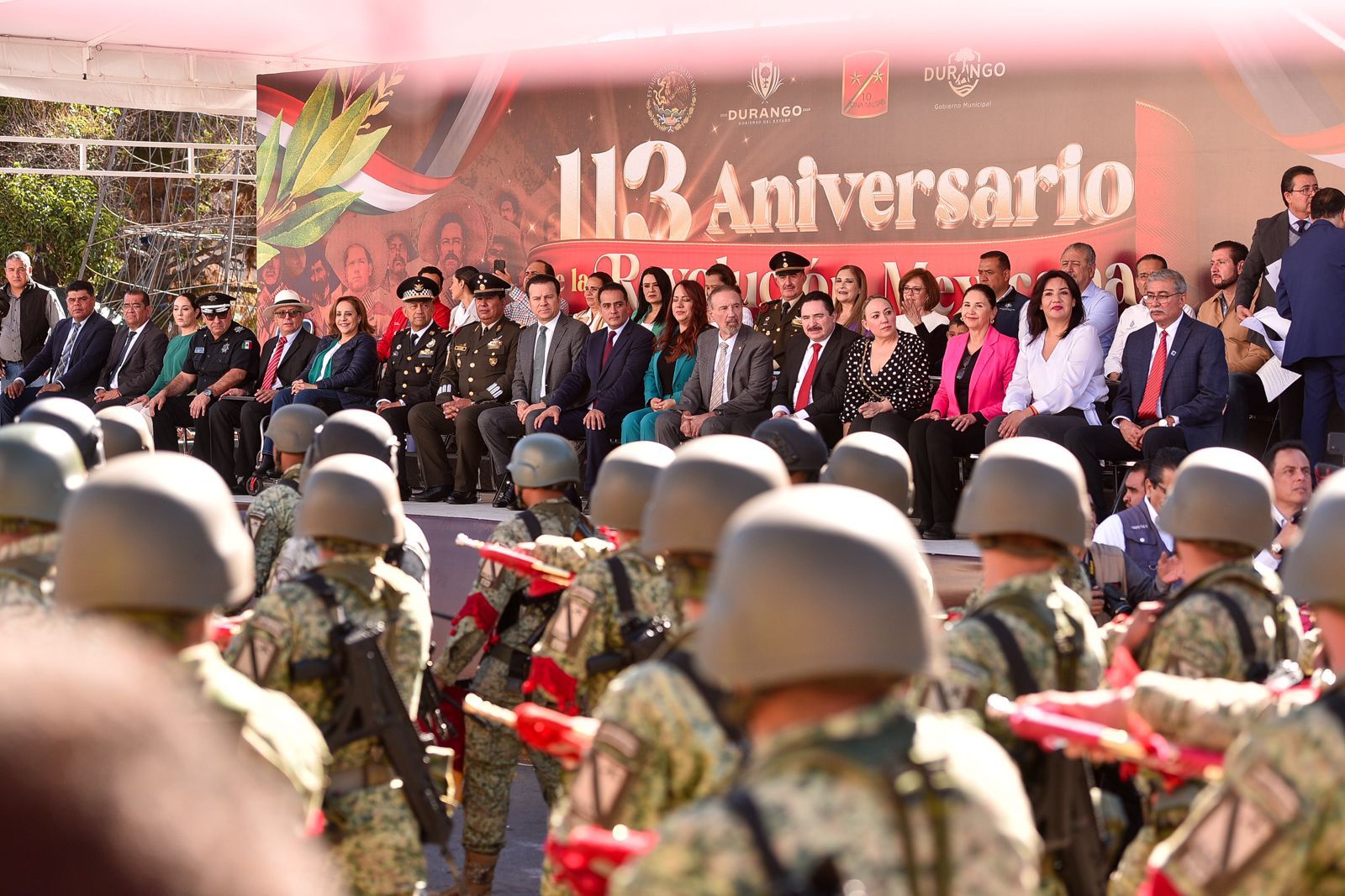Con gran algarabía se llevó a cabo el tradicional Desfile Cívico – Deportivo para conmemorar el 113 Aniversario de la Revolución Mexicana, donde el gobernador Esteban Villegas Villarreal junto a cientos de familias duranguenses, admiró la creatividad, esfuerzo y dedicación de 4 mil participantes de instituciones deportivas, educativas, dependencias de gobierno, civiles y militares, quienes recorrieron las principales calles de la ciudad.