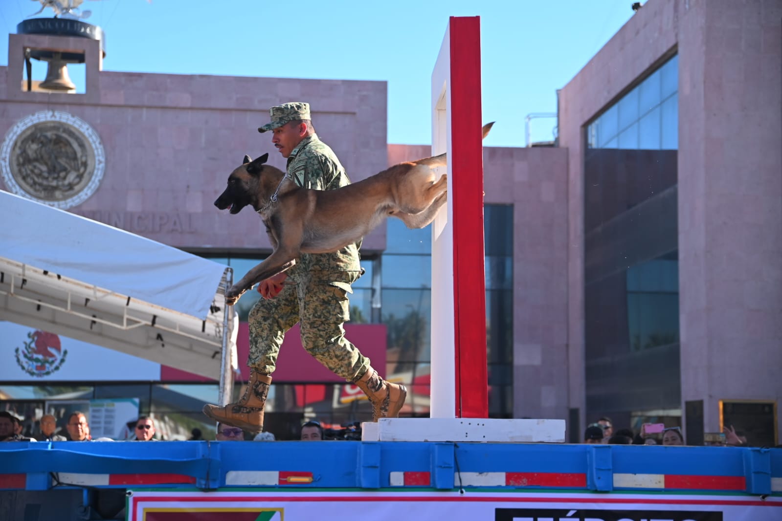 Durante el desfile, destacó la plataforma del Ejército Mexicano, que participó con los binomios caninos que llevaron a cabo algunos simulacros de rescate; además, por parte de la Dirección Municipal de Cultura, se realizó la escenificación de la emboscada, asesinato y tiro de gracias del General Francisco Villa.