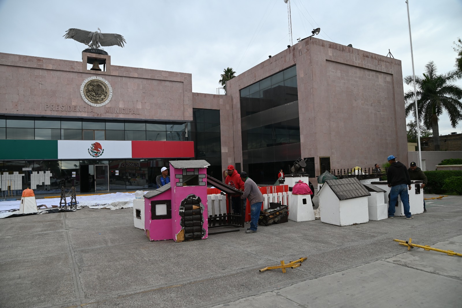 El Ayuntamiento de Gómez Palacio, a través de la Dirección de Servicios Públicos Municipales, inició el día de ayer con la instalación del Nacimiento Monumental en la explanada de la Presidencia Municipal.