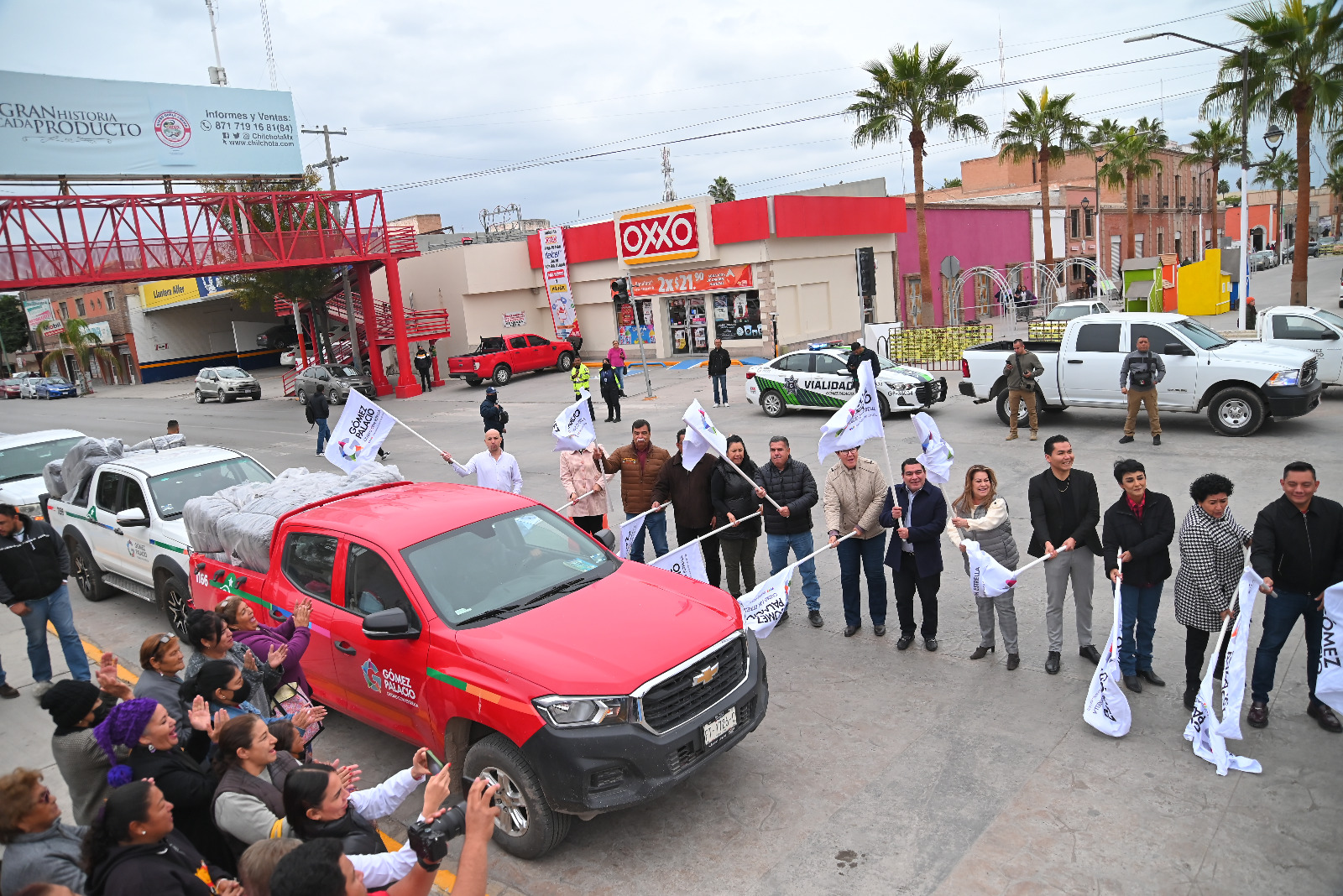 Durante el banderazo de salida, la alcaldesa Leticia Herrera Ale, señaló que serán 10 camionetas con cobertores las que acudirán al área urbana y rural a entregar los apoyos, por lo que dijo: “que esta temporada de invierno, ninguna persona de la tercera edad, se nos quede sin abrigo”.