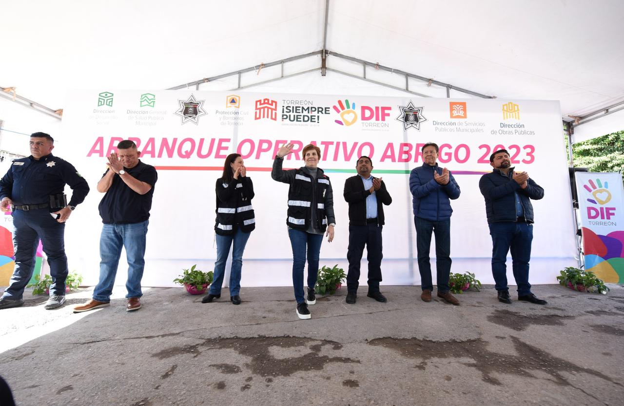 La señora Selina Bremer de Cepeda, presidenta honoraria del Sistema para el Desarrollo Integral de la Familia (DIF) Torreón, acompañada de autoridades municipales, dio el banderazo de arranque del “Operativo abrigo”, con el objetivo de proteger de las bajas temperaturas a los sectores más vulnerables de la ciudad.