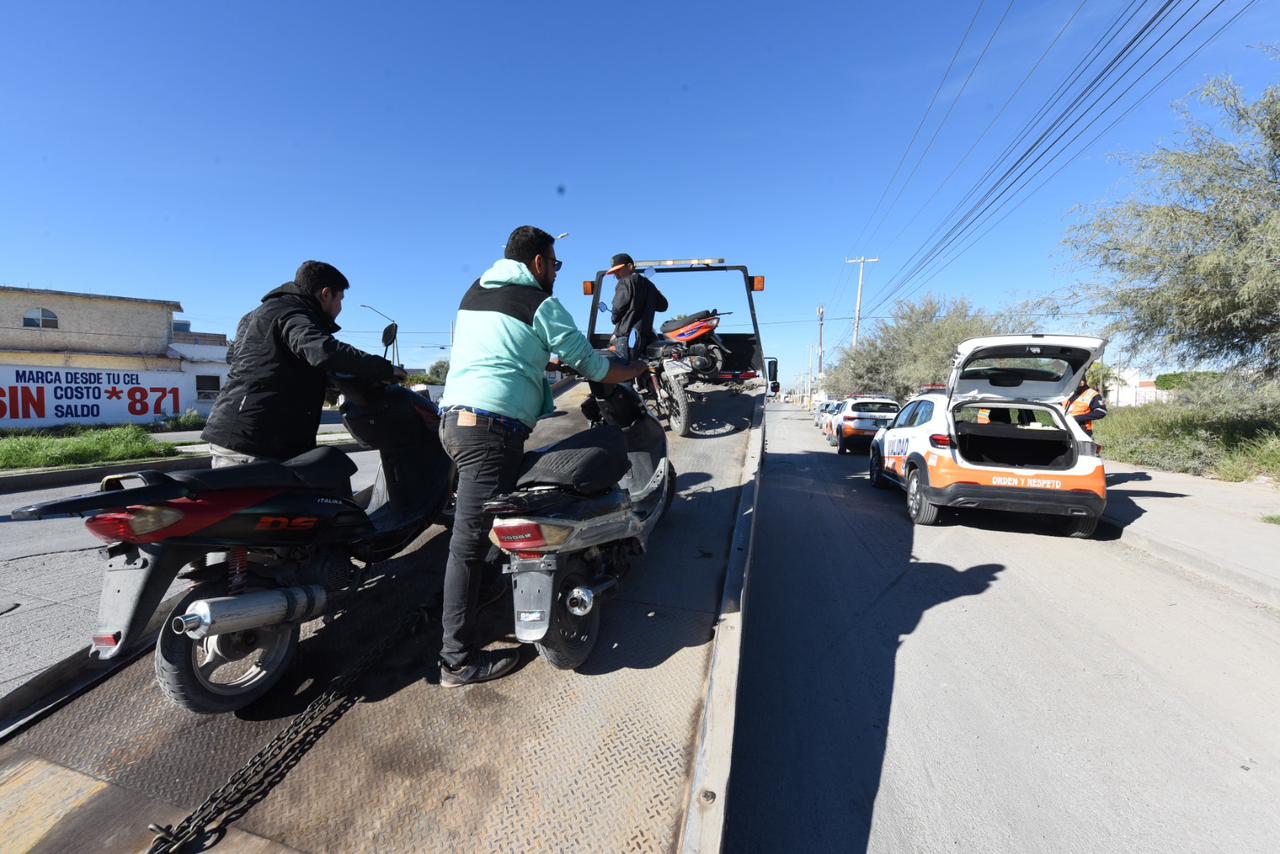 Resultado del operativo “Sin casco no viajas”, implementado por parte de la Dirección de Vialidad y Movilidad Urbana de Torreón, durante la presente semana se detectaron dos motocicletas con reporte de robo, hechos que fueron reportados a la autoridad competente.
