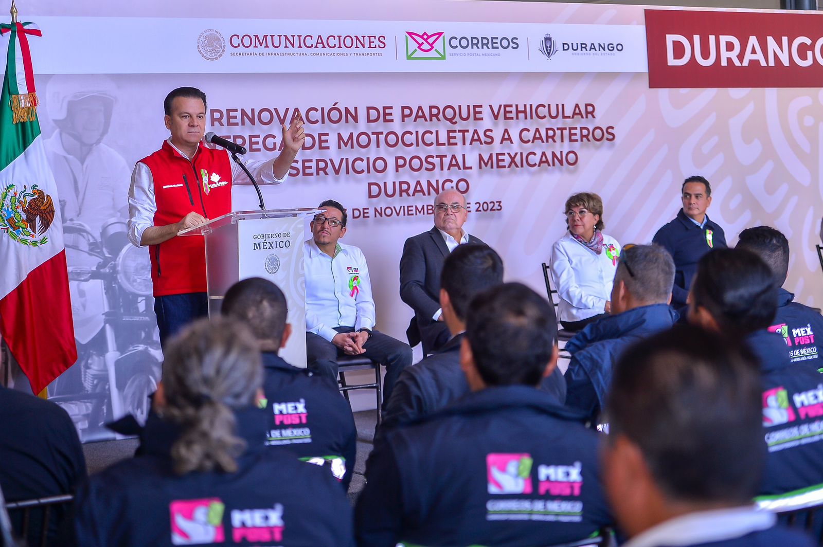 A nombre de la gran familia postal, Arturo Javier Márquez Flores, agradeció el apoyo del Gobernador y reiteró su compromiso para seguir realizando su trabajo de la mejor manera; “hoy nosotros estamos de fiesta porque vamos a recibir motocicletas nuevas, todos los días mis compañeros y yo salimos a las calles con muchas ganas de cumplir nuestra encomienda, contentos de portar nuestro uniforme y servir a la población duranguense”, concluyó.