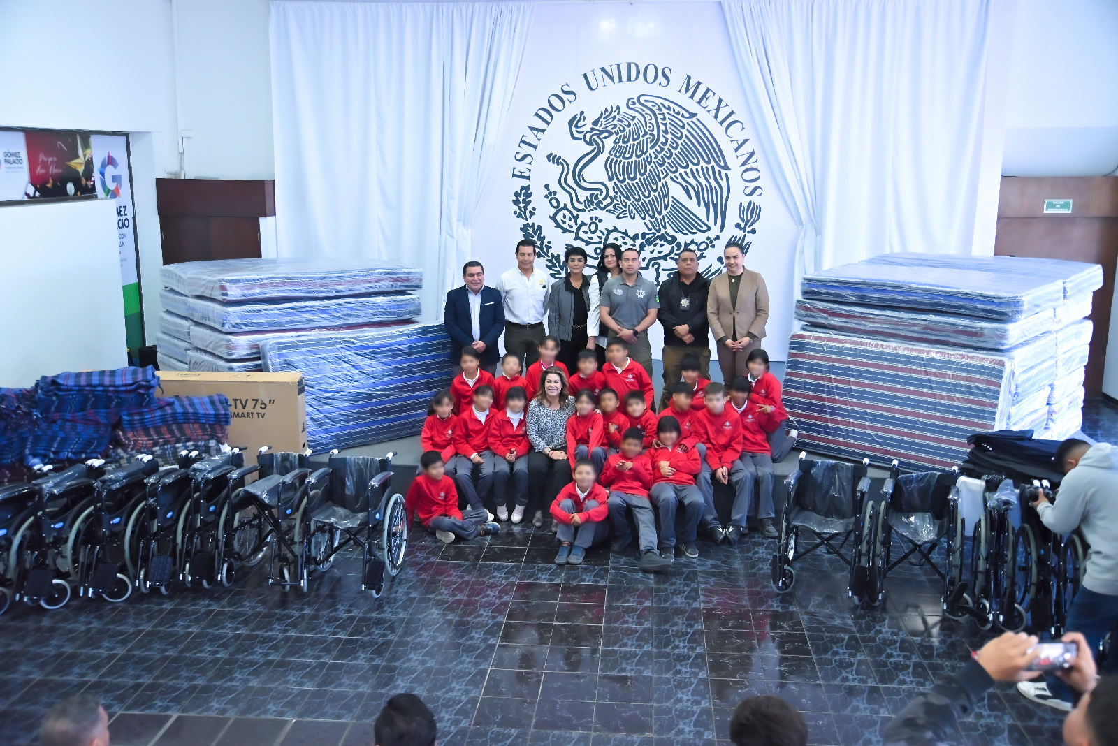 Acudieron como testigos y beneficiarios, un grupo de niños del Internado Francisco Zarco, quienes con una emotiva porra agradecieron a los benefactores, por este gesto de generosidad.