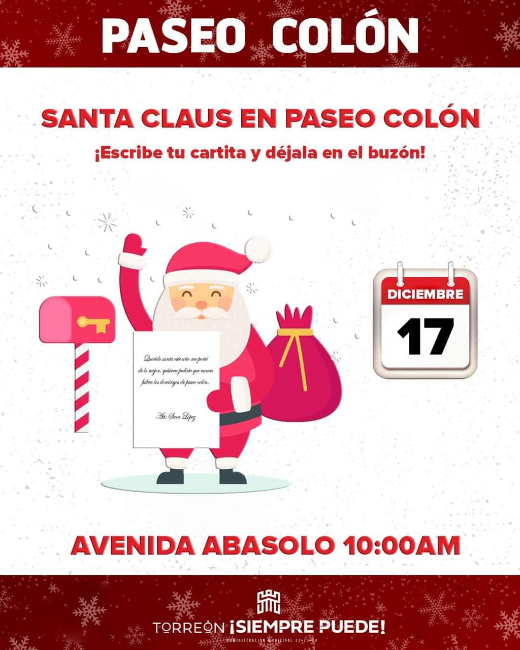 Dijo que la actividad estelar será la visita de Santa Claus, que estará sobre la avenida Abasolo a partir de las 10:00 horas, para recibir las cartas de deseos de los niños.
