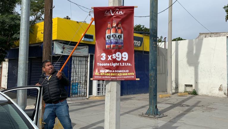 Señaló que recientemente se detectó un número considerable de pendones promocionales de un negocio de venta de vinos y licores, que fueron colocados de manera indebida sobre el bulevar Independencia.