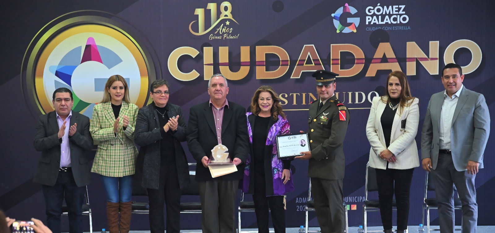 En el marco del 118 Aniversario de la elevación de Gómez Palacio al rango de ciudad, la presidenta municipal Leticia Herrera Ale otorgó el reconocimiento Ciudadano Distinguido 2023 a cinco honorables ciudadanos, quienes se han destacado por su altruismo y sus importantes aportaciones en diversos rubros en beneficio de la comunidad.