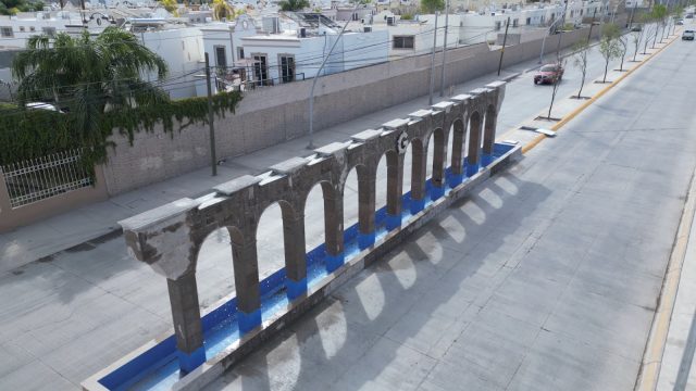 Sobre la construcción de la réplica del emblemático acueducto, el funcionario dijo que, desde hace algunos días culminaron las pruebas y está ya en funcionamiento, explicó que el agua que se utiliza, es tratada y está en constante reutilización gracias a la bomba instalada como parte de equipamiento; destacó también que este tipo de elementos, nos brindan identidad y sentido de pertenencia a quienes amamos a Gómez Palacio, concluyó.