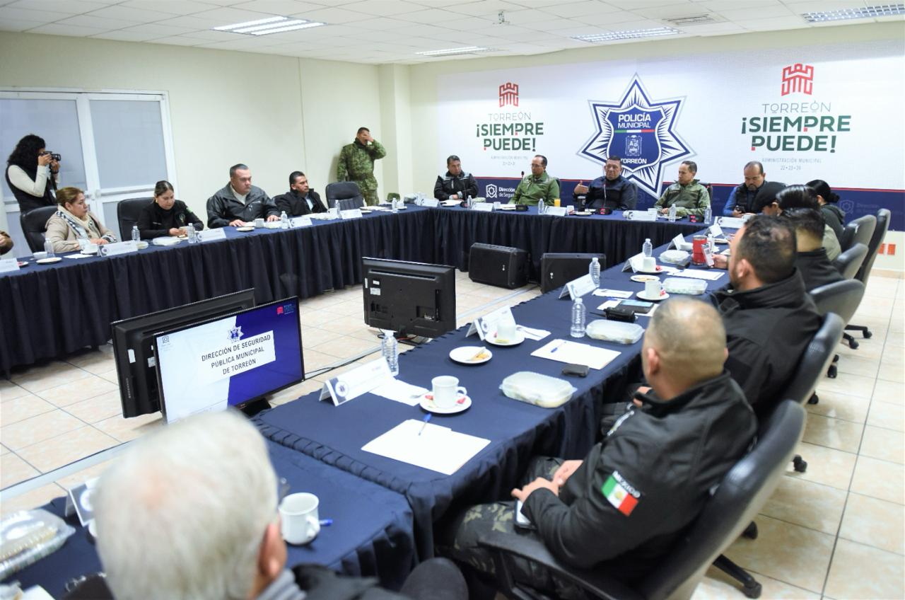 Durante la séptima reunión semanal de seguridad presidida por el comisario César Antonio Perales Esparza, director de la Policía de Torreón, en representación del alcalde Román Alberto Cepeda González, fueron analizadas las acciones que ejecutan las dependencias y corporaciones municipales, con motivo de los próximos eventos turísticos a realizarse en la ciudad.