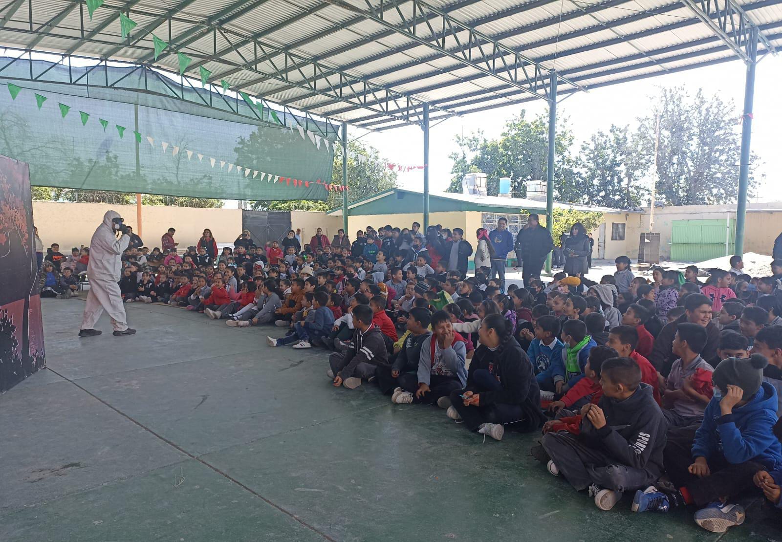 Lerdo, 17 febrero 2024.- Mas de 500 alumnos de la Escuela Primaria José Ramón Valdez se comprometieron a cuidar del recurso vital del agua, durante el performance “De la Conciencia a la Acción” que el departamento de Cultura del Agua en coordinación con la CAED desarrollaron esta semana en el plantel educativo.