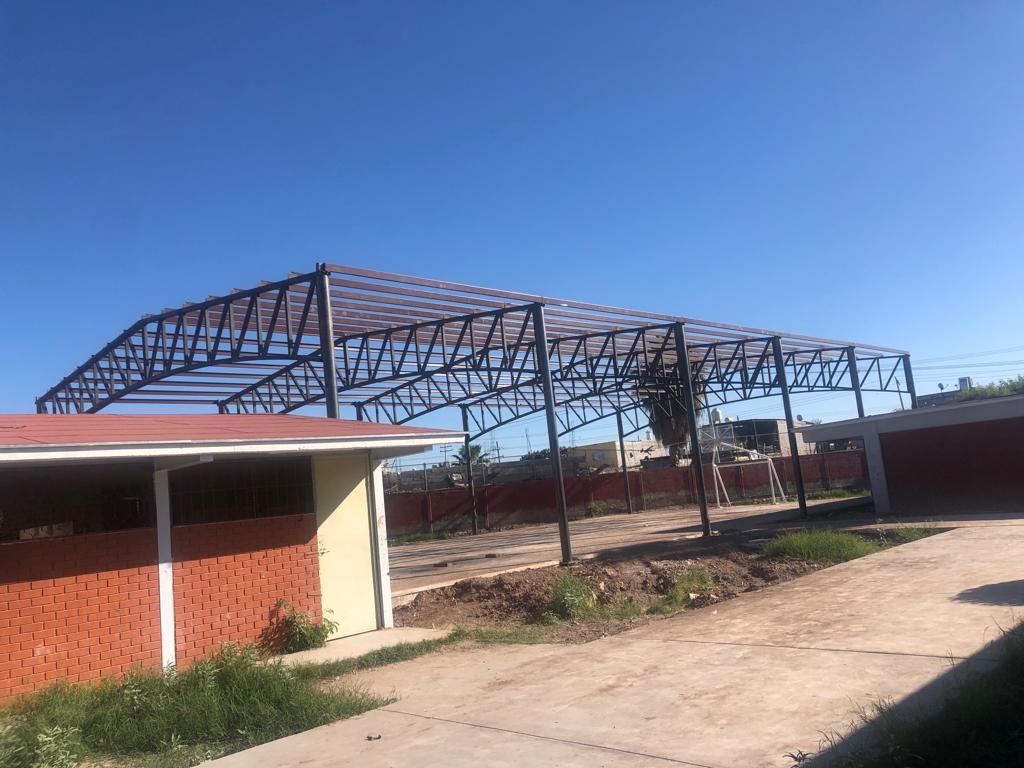 El funcionario señaló que en lo que respecta a las acciones para la construcción de techado en áreas cívicas y de recreación, actualmente se trabaja en la secundaria Elsa Hernández de De Las Fuentes, en la colonia Miguel de la Madrid, lugar en donde se colocan elementos de sujeción para tensión y ajuste de contraventeos en estructura, soportes para colocación de canalones laterales y bajadas pluviales.
