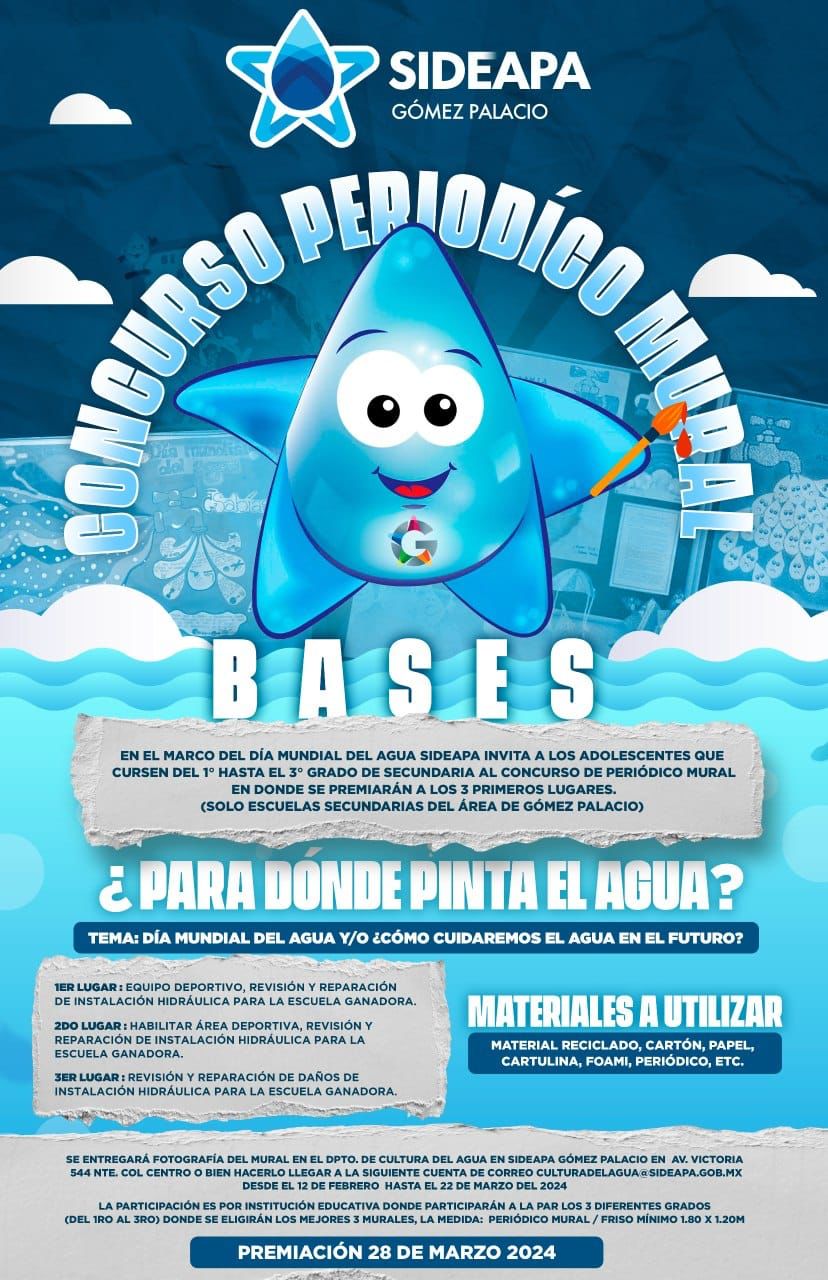 Por su parte, el director del Sideapa, Francisco Escalera Tostado, invitó a todas las escuelas secundarias del área urbana de Gómez Palacio, a participar en este concurso.