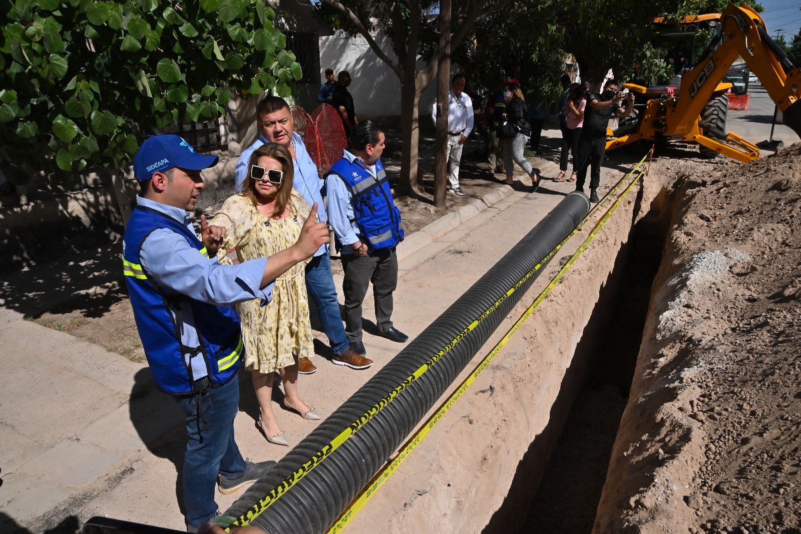 Durante la visita, el titular del organismo operador de agua de Gómez Palacio, indicó que en este lugar se reponen 432 metros de tubería de drenaje de polietileno de alta densidad de 12” de diámetro.
