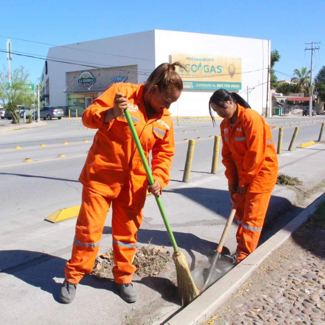 Con el objetivo de mantener las vialidades despejadas en beneficio de la seguridad de ciclistas y automovilistas, el personal de La Ola implementa labores para retirar tierra acumulada, basura y residuos vegetales en los principales bulevares del municipio.