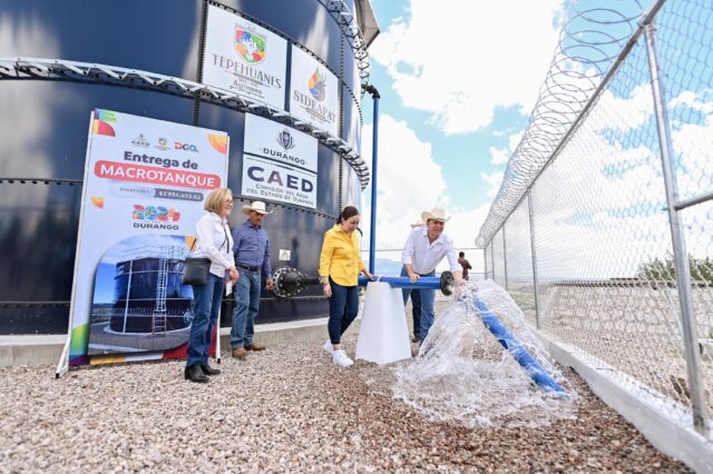 En este sentido, la titular de la Comisión del Agua del Estado (CAED), Yadira Narváez Salas, subrayó que estos beneficios para la gente serán por muchos años y por fín una demanda atendida de abastecimiento de agua potable con el rescate de un macrotanque en la colonia Nueva Esperanza.