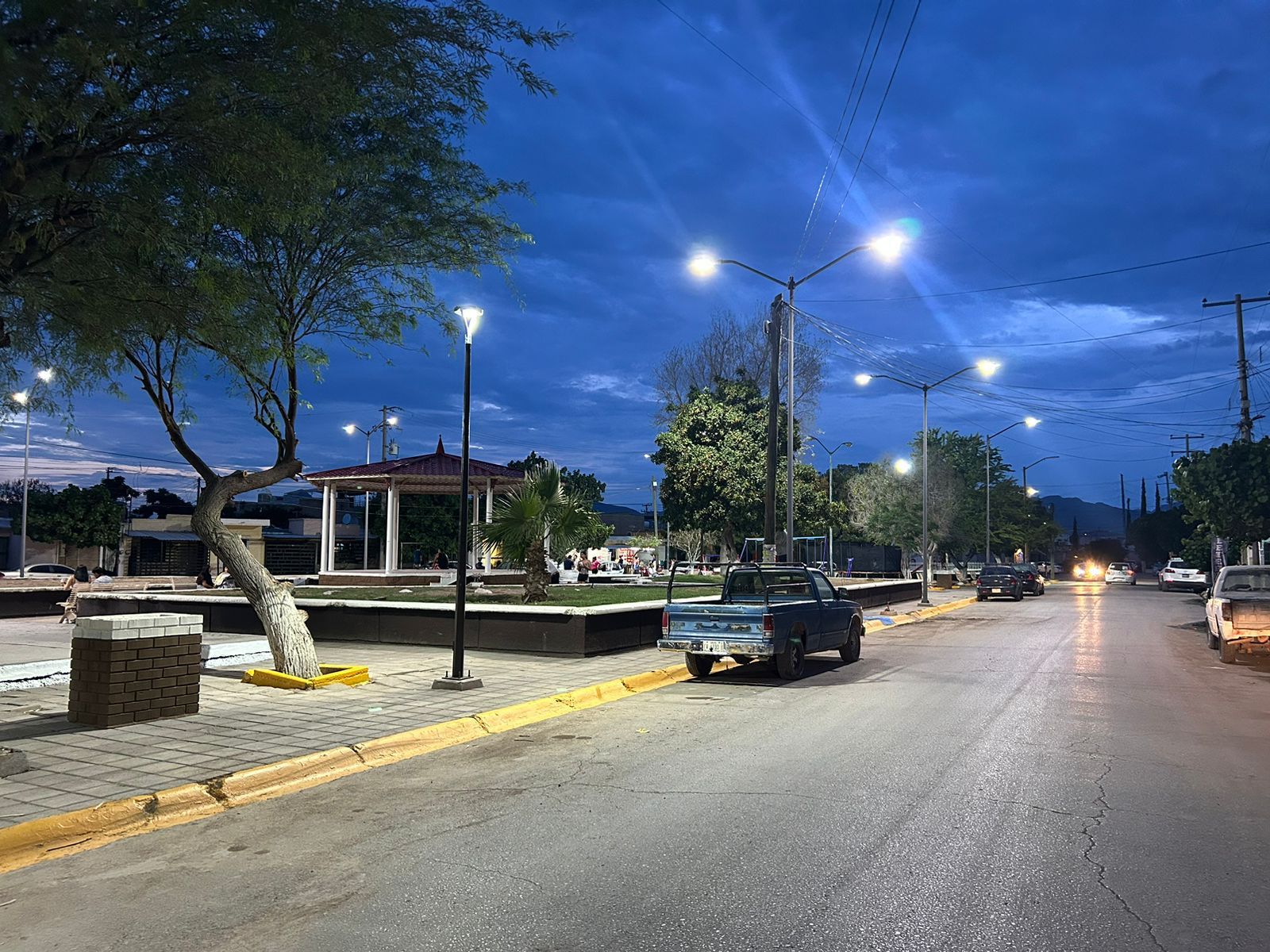 Este proyecto incluyó la instalación de 15 luminarias de luz led, nueve de punta piso (tipo farol), la sustitución de 18 postes con su respectiva base y la instalación de 13 reflectores, 9 en el área de juegos y 4 más en la techumbre.