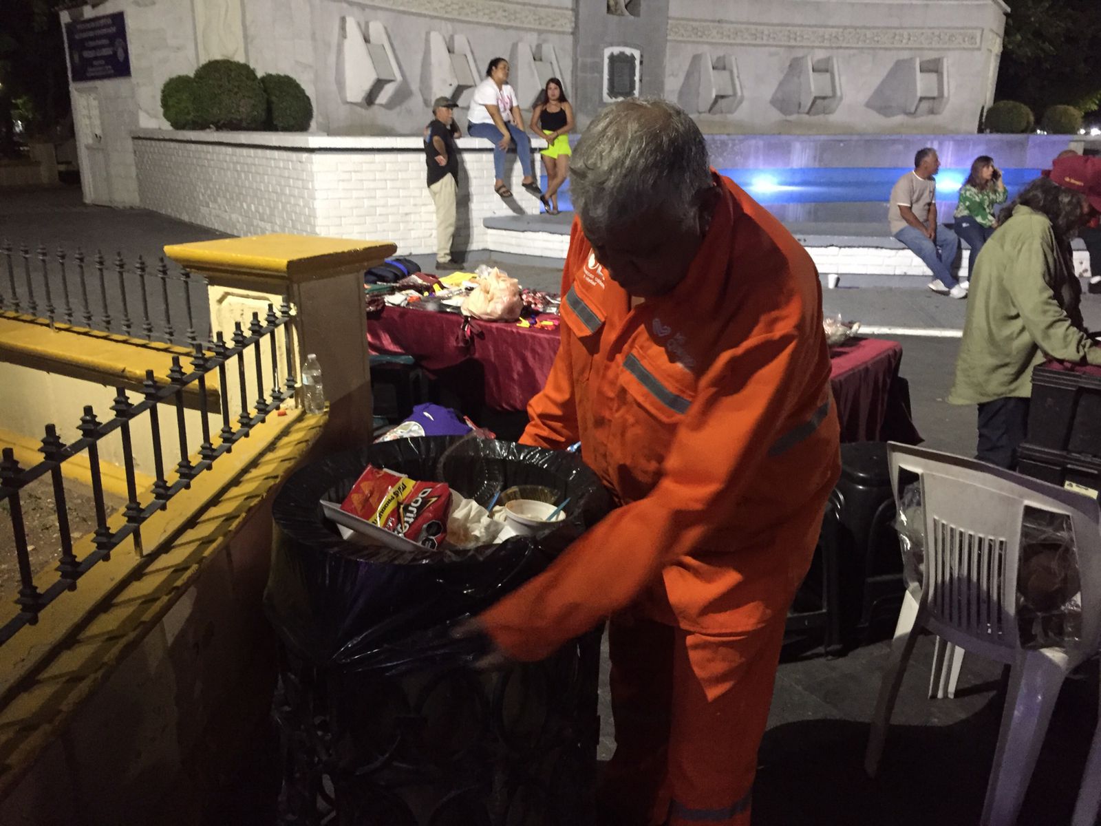 Dijo que el personal de La Ola, limpia los paseos públicos de lunes a jueves en turnos matutino y vespertino, y durante los fines de semana. Cuando se registra mayor afluencia de familias, el trabajo se extiende a tres turnos a lo largo del día.