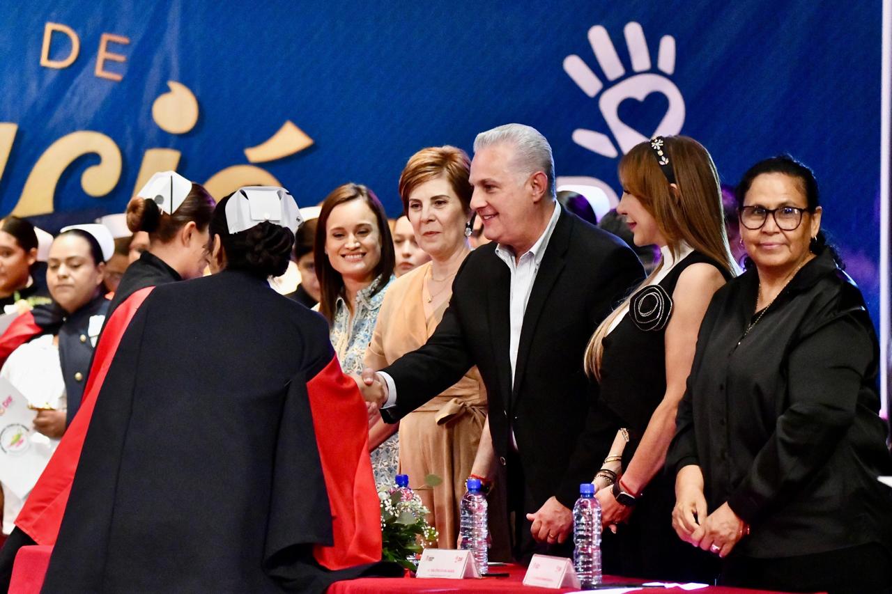 “Hoy concluyen sus estudios 179 alumnos; 92 de nuestros centros comunitarios; 36 de talleres Tonantzin y 51 alumnos que conforman la octava generación de la Escuela Técnica de Enfermería DIF Torreón. Para esta Administración Municipal que encabeza el alcalde Román Alberto Cepeda González y para el organismo, representa un orgullo formar profesionales de enfermería, quienes cuidarán de manera humana y profesional la salud de los ciudadanos de nuestro querido Torreón que así lo requieran”, expresó.