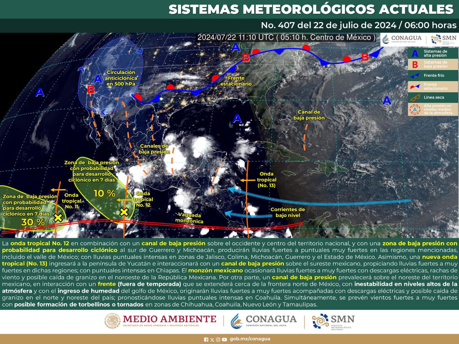 Saltillo, Coahuila de Zaragoza; 22 de julio de 2024 – La Subsecretaría de Protección Civil del Estado (PC) advierte sobre la presencia de un canal de baja presión sobre el noreste de México y un frente atípico cerca de la frontera norte, que en combinación con inestabilidad atmosférica y aportes de humedad del Golfo de México, ocasionarán lluvias puntuales intensas en Coahuila. Se esperan también vientos fuertes y la posible formación de torbellinos o tornados en la región.