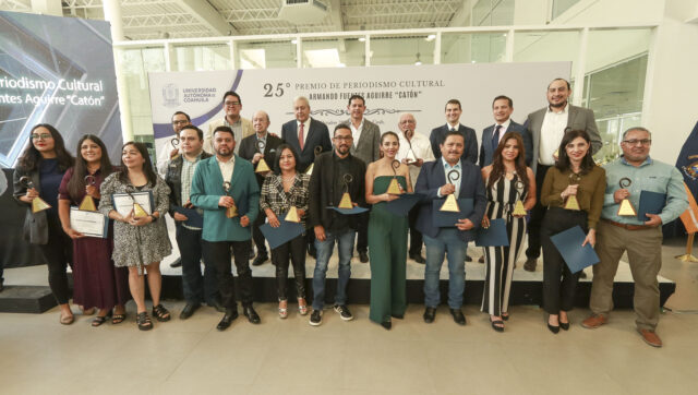 ARTEAGA, Coahuila. 9 de octubre de 2024. La Universidad Autónoma de Coahuila entregó la vigésima quinta edición del Premio de Periodismo Cultural Armando Fuentes Aguirre “Catón”, con la que se reconoció a 16 periodistas en las categorías de prensa, radio, televisión, impacto social y trayectoria.La ceremonia se realizó en el Lobby de la Infoteca Campus Arteaga, en donde en representación del gobernador de Coahuila, Manolo Jiménez Salinas, asistió el subsecretario de Gobierno y Comunicación Institucional de Coahuila, Diego Rodríguez Canales; el rector de la UAdeC, Octavio Pimente Martínez; el alcalde de Saltillo, José María Fraustro Siller; el cronista y escritor, Armando Fuentes Aguirre “Catón”. En su mensaje de bienvenida, el coordinador de Comunicación y Relaciones Públicas de la UAdeC, Sergio Arévalo, agradeció la presencia de ex coordinadores de la dependencia, dueños, directores, editores y jefes de información de medios de comunicación, y de los periodistas que promueven el periodismo cultural.Hizo un recuento de los 25 años que se ha entregado este Premio que lleva el nombre de Armando Fuentes Aguirre “Catón”, a quien reconoce como defensor del periodismo cultural, además agradeció al rector Octavio Pimentel el apoyo y compromiso de seguir trabajando en el reconocimiento de la difusión y promoción cultural a través del periodismo.En su mensaje, el Rector destacó la importancia de reconocer a quienes contribuyen al periodismo cultural en el estado y el país, rememoró su asistencia a la primera edición del premio, resaltando la continuidad de las buenas prácticas de la UAdeC en este ámbito.Reiteró el compromiso de la Universidad con la transformación de la misma, a través de la educación, pues dijo que el periodismo cultural y la UAdeC comparten la misión de preservar y difundir el conocimiento, como una conexión del periodismo cultural con los valores de libertad, liderazgo y lealtad, mismos que son fundamentales para la máxima casa de estudios.Por su parte, Armando Fuentes Aguirre, evocó a dos grandes figuras para enmarcar sus palabras, al poeta Ramón López Velarde y el filósofo José Ortega y Gasset y destacó la conexión entre belleza y verdad, y citó el poema «El ancla» de López Velarde, que refleja el deseo de llegar al final de la vida acompañado de amor.Fuentes Aguirre, resaltó la importancia de la palabra como el más alto don humano, homenajeando a los galardonados por utilizarla para difundir belleza y verdad, en lugar de mentiras o propaganda; agradeció al alcalde de Saltillo, José María Fraustro Siller, y ex rector de la Universidad por haber dado su nombre al premio, y al rector Octavio Pimentel Martínez por darle continuidad por resaltar la importancia de este premio para la cultura en Coahuila.En su intervención, el subsecretario de Gobierno y Comunicación Institucional de Coahuila, Diego Rodríguez Canales, dijo que el periodismo cultural contribuye en la construcción de una mejor sociedad, y más aún en tiempos de cambios tecnológicos y con capacidad para conectar a la sociedad con sus raíces y valores.En esta edición 25 participaron 81 periodistas con 144 trabajos, que fueron publicados del 1 de mayo de 2023 al 19 de abril del 2024, se evaluaron bajo los siguientes criterios: observancia de las características del género en el que participan, contribución a la promoción de la cultura, novedad del tema presentado, originalidad en el tratamiento de la información y claridad expositiva.Los ganadores en la categoría de Prensa son: Nota “¡Coahuila, escenario de historias! Se filman 2 películas en Saltillo: se encamina a convertirse en escenario del cine”, de Israel Francisco García García del periódico Vanguardia; el Artículo “El lenguaje de las asesinadas. Feminicidio y no Ficción”, de Lucila Navarrete Turrent del Diario La Razón de México.El Reportaje “El legado de Magdalena Mondragón”, de Ruth Idalia Castro Parada de la revista Siglo Nuevo; la Crónica “Cien años sin Pancho Villa”, de Saúl Sebastián Rodríguez de la Paz del Siglo de Torreón; la Entrevista “Elena Garro es la escritora más polifacética de la literatura en lengua española: Patricia Rosas Lopátegui” de Mayra Karina Franco Rosales del medio digital Plaza Pública.Así como la Columna “Demonios y trampas mentales”, de Jessica Ayala Barbosa de Milenio Laguna y la Fotografía “Dinorayo” de Jesús Alejandro Rodríguez Ávila de Zócalo Saltillo.En la categoría de Radio, en Nota “Momento mori” de Leslie Paola Delgado López de Grupo Región 91.3 FM; Entrevista, “Carola Sánchez: Escultora, pintora, cronista” de Carlos Alberto Ordoñez Guerrero de Radio Torreón 96.3 FM y Reportaje, “Corridos tumbados, una cultura de excesos” de Jessica Guadalupe Rosales Saucedo de Grupo Región 91.3 FM.En la categoría de Televisión, los ganadores son: Nota, “Hacienda Santa María” de José Luis Sánchez Durón de TeleSaltillo; Entrevista, “Conoce al joven pianista lagunero que ha recorrido el mundo” de Adriana Vargas Flores de NMás Televisa Laguna; Reportaje, “Ratas de campo: Alternativa gastronómica en el desierto de Coahuila” de Eric Pichardo Anaya de TV Azteca Coahuila y Mejor toma, “Amanecer colorido en Saltillo” de Julio César Pérez Cano de NMás Televisa Saltillo.Asimismo, se entregó un premio en la categoría de Impacto Social en Radio a Laura Eliza Mery González de Digital 106.5 FM RCG Media, por “Prevención y detección de abuso sexual infantil”; y en la categoría por Trayectoria, recibió el reconocimiento Néstor Alfredo Jiménez Flores, Monclova, por 26 años en el ejercicio periodístico cultural, actualmente labora en el periódico El Tiempo de Monclova.De igual manera el Rector entregó Preseas Especiales con motivo del 25 Aniversario del Premio de Periodismo Cultural y por ser impulsores del mismo, a Armando Fuentes Aguirre, al ex rector y