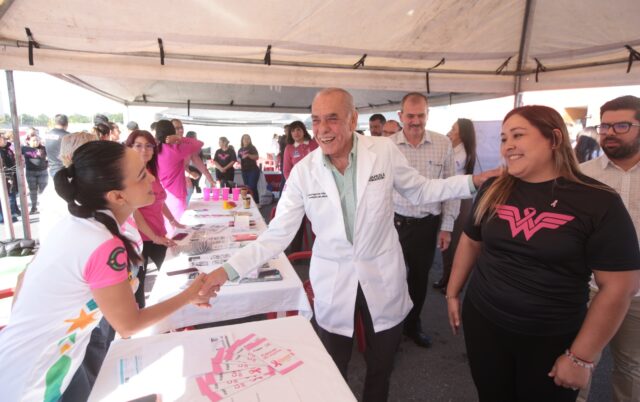 Saltillo, Coahuila de Zaragoza; a 19 de octubre de 2024.- En la fecha en la que se conmemora el Día Mundial del Cáncer de Mama, el gobernador Manolo Jiménez Salinas reiteró su compromiso de que para su administración, la salud de las niñas, jóvenes, adolescentes y mujeres en general es una prioridad.Manolo Jiménez mencionó que durante todo el mes de octubre se han estado llevando a cabo en todas las regiones de la entidad, una serie de acciones que tienen que ver con la prevención, atención y concientización de esta enfermedad.Destacó que todas las dependencias de su gobierno trabajan de manera transversal y coordinada para acercar a todas las comunidades los servicios de salud para prevenir y atender esta enfermedad, para tener un mayor alcance de las beneficiarias.Recordó que de manera conjunta, Mejora Coahuila, la Secretaría de Salud, DIF Coahuila, Inspira Coahuila y la Secretaría de las Mujeres, entre otras dependencias, han participado en las Brigadas Mejora Mujeres que se han estado llevando a cabo en todas las regiones del Estado, en las que se ofrecen servicios en salud dirigidos a la prevención, atención y detección del cáncer de mama, además de que se ofrecen servicios en atención psicológica y asesorías jurídicas. “La salud de nuestras niñas, adolescentes, jóvenes y mujeres coahuilenses es un compromiso que adquirimos desde la campaña, por eso desde el inicio de mi administración indiqué que sería el gobernador de las mujeres, y o les vamos a fallar”, comentó el Mandatario estatal.De la misma manera, en estas Brigadas Mejora Mujeres se realizan estudios de mastografías y papanicolaus; se ofrecen métodos anticonceptivos de acción prolongada; módulo de prevención de adicciones, así como los programas regulares de las brigadas Mejora.Jiménez Salinas explicó que de parte del DIF Coahuila, se han programado una serie de actividades para las mujeres de todas las regiones de Coahuila, para concientizar y compartir información sobre la enfermedad, como los factores de riesgo, tratamientos, síntomas, entre otros.Asimismo, recordó que la Secretaría de Salud realizó el zumbatón junto a una macro brigada que se celebraron en el Centro Oncológico de Saltillo, actividades con las que se hizo hincapié que la activación física y los estilos de vida saludables juegan un papel importante en la prevención y la detección de la enfermedad.Además, la Secretaría de Salud realiza capacitación a personal, pláticas informativas de prevención y caravanas de servicios para prevención de cáncer de mama con mastógrafo móvil.El Gobernador del Estado mencionó que la Secretaría de Salud cuenta con cinco equipos para la práctica de mastografías en digital, mismos que están ubicados en Piedras Negras y en Torreón; en el Centro de Salud “Madero” y el Hospital General, ambos de Saltillo; así como en el de Nueva Rosita. Exhortó a la población en general a tomar conciencia sobre la prevención y la valoración oportuna del cáncer para detectar la presencia de la enfermedad.Por otra parte, indicó que este 19 de octubre se encenderán de manera simultánea los edificios de gobierno con iluminación rosa, además de las sedes de los poderes Legislativo y Judicial, las Presidencias Municipales y los monumentos representativos de la entidad. “Trabajando en equipo por la salud de nuestras mujeres, podemos generar mejores resultados”, añadió el gobernador Manolo Jiménez.-o0o-