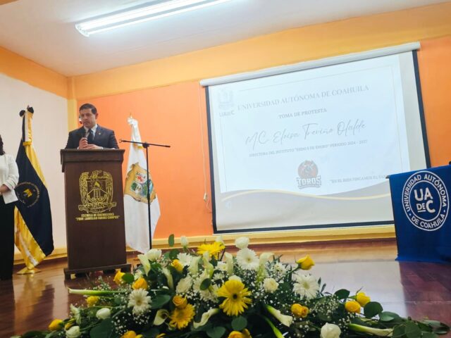 FRONTERA, Coahuila. 12 de noviembre de 2024. El rector de la Universidad Autónoma de Coahuila, Octavio Pimentel Martínez, tomó protesta como primera directora electa del Instituto Ejido 8 de Enero a la M.C. Eloísa Treviño Olalde, cabe mencionar que el plantel alcanzó esa categoría institucional gracias a la decisión y visión del Consejo Universitario.En la ceremonia se contó con la presencia del coordinador de Unidad Norte, Luis Carlos Talamantes Arredondo, directoras y directores de las diversas escuelas y facultades de UN, docentes, estudiantes, personal administrativo y manual, así como invitados especiales. En su mensaje el rector Octavio Pimentel Martínez, destacó que la maestra Eloísa Treviño, se desempeñó con gran compromiso y eficiencia como coordinadora del plantel, por ello celebró que asuma el cargo de directora y que el instituto ahora tenga la capacidad de constituir su propio Consejo Directivo, y de tener representación directa en el Consejo Universitario.“Gracias a este proceso, estimada comunidad, les ha sido posible elegir a la persona titular de la dirección, en un acto de democracia en el cual han ejercido sus derechos como universitarias y universitarios, hoy cuentan con total capacidad para impulsar el crecimiento de su oferta educativa y fortalecer su compromiso con la excelencia académica, esta transición les ha abierto las puertas a nuevas oportunidades”, dijo. Enfatizó en que con esta nueva estructura el Instituto Ejido 8 de Enero se convertirá en un referente no solo en la docencia, sino también de la investigación, del impulso a la cultura, a la extensión universitaria y en el servicio a la comunidad, áreas fundamentales para el desarrollo integral de la Universidad, que contribuye a formar no solo estudiantes preparados, sino ciudadanas y ciudadanos comprometidos con el progreso y bienestar de su entorno.“Maestra Eloísa hoy inicia un nuevo capítulo para el Instituto Ejido 8 de Enero, y estoy seguro de que, bajo su dirección, no solo alcanzarán los objetivos planteados, sino que marcará una pauta de liderazgo y compromiso que será ejemplo para toda nuestra Universidad, sabemos que cuenta con la experiencia, la dedicación y la visión necesarias para llevar adelante este proyecto y le brindo todo mi respaldo en esta nueva etapa”, comentó. Por su parte, la directora Eloísa Treviño Olalde, agradeció al rector Octavio Pimentel por el apoyo que siempre ha brindado a los estudiantes que son la razón de ser de la Universidad, así como para los docentes, quienes día a día se esmeran por educar y al personal administrativo que es parte fundamental para el funcionamiento del Instituto.“Hoy después de haber vivido tantas experiencias en mi andar Universitario, me ha tocado esta gran responsabilidad, la dirección del Instituto Ejido 8 de enero, que surge al principio como una extensión de esta Escuela de Bachilleres “Prof. Ladislao Farías Campos”, donde me inicié como catedrática, laboré como académica, administrativa y directora, por lo que me siento parte también de aquí y sigo siempre ligada como escuela hermana”, comentó. Treviño Olalde, se comprometió a trabajar con responsabilidad, priorizando siempre los intereses universitarios, antes que los personales, así como a brindar una educación de calidad basada en conocimientos, habilidades, destrezas y sobre todo fomentando los valores de responsabilidad, respeto, y empatía.