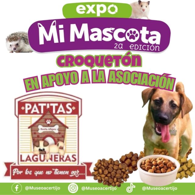 FECHA: Miércoles 13 de noviembre 2024 Acertijo abre sus puertas nuevamente como un museo de modalidad Pet-friendly al ser la sede de la segunda edición de la “Expo Mi Mascota 2024”Comarca Lagunera.- Conscientes de que la familia es el pilar más importante de nuestra sociedad y que las mascotas forman parte de este entorno, dentro de las actividades que impulsa el gobierno de Esteban Villegas Villarreal, el Acertijo Museo Interactivo invita a todas las familias de la región a que se unan a la segunda edición de la “Expo Mi Mascota 2024”, el próximo sábado 16 y domingo 17 de noviembre de 10 de la mañana a 6 de la tarde.El director del Museo Acertijo, Gustavo Gutiérrez Zamudio destacó que, esta Expo además de ser una gran oportunidad para la sana convivencia familiar, permitirá a los asistentes formar parte del “Croquetón” mostrando su amor por los animalitos a través de la donación de alimento por kilo o por bulto, en beneficio de la Asociación Patitas Laguneras A.C. “Ya es el segundo año que tenemos esta expo y es muy interesante, porque por dos días el Acertijo recibe a los niños junto con sus mascotas y se vive un ambiente muy bonito; en esta ocasión, les invitamos para que asistan y apoyen esta buena causa”, apuntó el director.Los niños podrán llevar a sus pequeños amigos disfrutarán de sorpresas, películas, regalos, concursos de disfraces de mascotas, venta de artículos para los consentidos de cuatro patas; además de que habrá clubes de mascotas, vacunaciones, esterilizaciones (a cargo de Ladridos con Alas), desparasitación, adopciones responsables y muchísimas otras actividades en las que podrán integrarse todos los miembros de la familia. La entrada tiene un costo de 60 pesos.Por último, Gutiérrez Zamudio invitó a que todos los que gusten asistir estén al pendiente de las redes sociales del Acertijo Museo Interactivo para conocer más detalles y recomendaciones sobre esta segunda edición de Expo Mi Mascota 2024, en la que todos van a disfrutar y divertirse.*0o0*