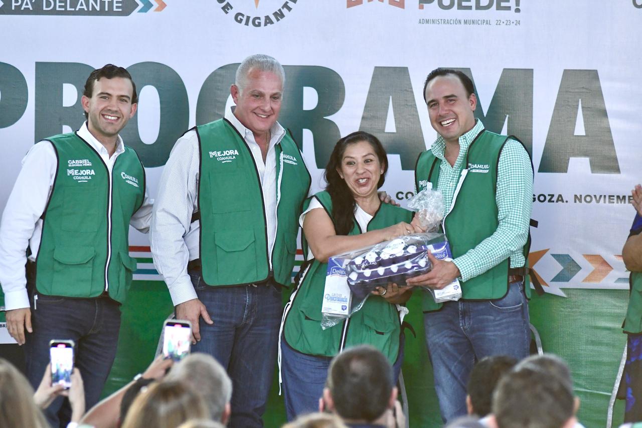 Torreón, Coahuila. A 13 de noviembre de 2024.Con una inversión superior a los 150 millones de pesos, el gobernador del Estado, Manolo Jiménez Salinas, y el alcalde Román Alberto Cepeda González, cerraron en Torreón el Gran Programa Alimentario, el cual benefició a 480 mil familias de Coahuila. La clausura del programa se realizó en la colonia Villa California, en donde entregaron huevo y leche a vecinas de este sector y aledaños. El Presidente Municipal agradeció al Gobernador por elegir a Torreón para finalizar el programa social, así como por el trabajo coordinado que mantienen en beneficio de la ciudadanía. “Al final del camino la coordinación de esfuerzos en materia de seguridad, cultura, arte y deporte es importante, pero también nos interesa atender en conjunto a nuestra gente mes a mes, a través de este gran programa donde podemos coadyuvar y combinar las acciones, y tenemos el compromiso para seguir trabajando”, dijo. El Alcalde reiteró que en los últimos meses de la actual Administración y en la siguiente, continuará el trabajo en equipo con el Gobierno del Estado para los diferentes programas y obras para el desarrollo de Torreón. “Tendremos más huevo, más leche, más techumbres y más rehabilitación de plazas y pavimentación y más todo. Habrá toda la colaboración, coordinación y trabajo en equipo con nuestros grandes aliados que están aquí, y que son para quienes trabajamos y por lo que trabajamos”, señaló el edil. Cepeda González agregó que si bien es la culminación de un programa, es también el fortalecimiento de algo que viene con mayor trabajo y compromiso, que inicia el primero de enero con un gran equipo que seguirá trabajando para construir el Torreón, La Laguna y el Coahuila que queremos. “Torreón seguirá creciendo, nuestro querido Torreón seguirá pudiendo y Coahuila seguirá creciendo ¡a pasos de gigante!”, aseguró el Presidente Municipal. El gobernador Manolo Jiménez Salinas, dijo que hoy Coahuila es uno de los mejores estados de México para vivir, y señaló que es resultado de un trabajo conjunto. “Con Román hemos venido trabajando en equipo en muchas cosas para bien de este gran municipio, de la Perla de La Laguna, y así seguiremos trabajando por los próximos tres años para bien de nuestra gente de Torreón”, reiteró. Acerca del programa alimentario, dijo que se está beneficiando a miles de familias de los 38 municipios del Estado, en apoyo también a la economía de los hogares. “Se están invirtiendo cientos de millones de pesos en este programa que apoya la parte alimentaria, pero también la economía de nuestras familias. Es un programa que se suma a muchos otros que a través de Mejora Coahuila estamos llevando a todas las regiones del estado. En Torreón nos aventamos un súper programa de pavimentación que nos permitió cubrir muchas colonias, pero también le entramos fuerte a la perforación y equipamiento de pozos”, señaló. El mandatario reiteró que hoy Coahuila es una potencia nacional, que si bien siempre hay áreas para mejorar y cosas por hacer, se continuará trabajando en equipo y siempre hacia adelante. Por su parte, Gabriel Elizondo Vélez, coordinador general de Mejora Coahuila, resaltó el trabajo del Gobernador en territorio, llevando acciones, obras y programas a las colonias, barrios y ejidos de todas las regiones del estado. “Se han estado atendiendo las necesidades de las familias con programas estratégicos, este programa alimentario que arrancó en enero y en el que estaremos entregando más de 480 mil acciones en Coahuila con una inversión de más de 150 millones de pesos. Solamente en Torreón son más de 109 mil beneficiarios y una inversión de más de 33 millones de pesos”, detalló. En nombre de las beneficiarias, Silvia Adriana Cortinas Meléndez, agradeció el apoyo del programa que ayudó a que sus hijos tuvieran una alimentación más sana y completa, consideró. Estuvieron también presentes: Luz Elena Morales Núñez, presidenta de la Junta de Gobierno del Congreso del Estado; Óscar Pimentel González, secretario de Gobierno; Eduardo Olmos Castro, secretario de Desarrollo Regional de La Laguna; Enrique Martínez y Morales, secretario de Inclusión y Desarrollo Social en el Estado; Felipe González Miranda, diputado local; Xavier Herrera Arroyo, subsecretario de Asuntos Políticos y Sociales de la Secretaría de Gobierno; Hugo Dávila Prado, delegado municipal de Mejora; Irma Guadalupe Castillo Olvera, beneficiaria; Martina López Hernández, beneficiaria; Manuel Gómez Martínez, coordinador de zona; y Napoleón Murillo Favela, coordinador de sector. Además estuvieron alcaldes de otros municipios como de San Pedro, Matamoros y Sierra Mojada.- Torreón ¡Siempre Puede! –