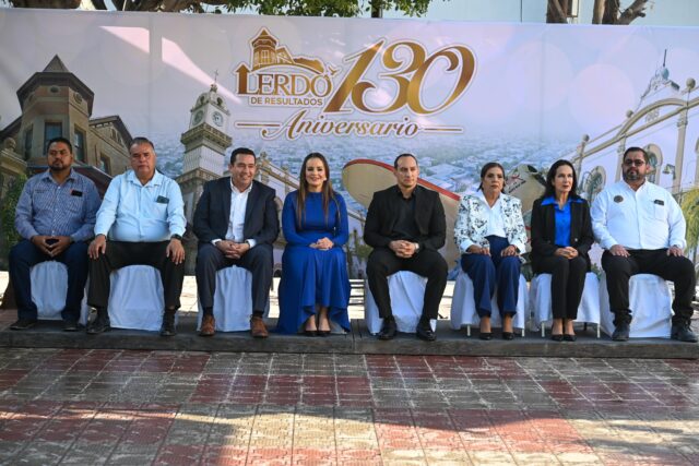 **Lerdo, 16 de noviembre 2024.- Con un acto cívico frente al busto Lic. Miguel Lerdo de Tejada, en la plaza principal de Ciudad Jardín, la señora esposa del Presidente Municipal Homero Martínez Cabrera y diputada local, Susy Torrecillas Salazar, celebró los 130 Años de Lerdo elevado al rango de Ciudad.La diputada Susy Torrecillas celebró este espléndido aniversario de la Ciudad, y reconoció al Ayuntamiento de Lerdo por las magníficas actividades que desarrolló durante esta semana: desde el festival de instituciones educativas, la entrega de preseas a Ciudadanos Distinguidos y la coronación de la Reina de Lerdo.»Hoy son 130 años, desde 1894 y hoy 2024, vemos un Lerdo en crecimiento, encontrando su vocación económica, industrial y turística», exhortó a la ciudadanía para respetar, proteger y valorar los espacios del municipio, su historia y su diversidad cultural.»Hoy Lerdo está creciendo con un paso firme, con obras consolidadas, con una buena administración, y con un desarrollo cultural y turístico» concluyó.En representación del Alcalde de Lerdo Homero Martínez, el Secretario del Ayuntamiento Jesús Eduardo Lara Urby, compartió a los presentes que la primera autoridad en el municipio de Lerdo trabaja arduamente en atender los retos para el crecimiento y evolución de la ciudad y así lograr el desarrollo económico y social.»Ustedes son un gran ejemplo de la fortaleza de nuestro municipio y del gran potencial que hay en nuestra gente. Vivimos en un municipio privilegiado»El funcionario enumeró algunas de las fortalezas del municipio: Lerdo forma parte de la Zona Metropolitana de la Laguna; entre sus principales actividades económicas, se encuentra la agricultura y la ganadería; Lerdo forma parte de una de las cuencas lecheras más grandes del Norte del país; cuenta con increíbles atractivos turísticos, destacando la reserva natural del Cañón de Fernández, ahora, área federal protegida; entre otras virtudes. «Tengamos en mente el recordar siempre nuestra historia y destacar el rol de quienes la forjaron» finalizó exhortando a los asistentes a honrar la historia del Municipio y poner en alto a Ciudad Lerdo.En este solemne evento, también se contó con la presencia del subsecretario de Gobierno Región Laguna, Raúl Meraz; el secretario Técnico Ramón Acosta; el Maestro Diego Alvarado, SNTE sección 35; Maestro Rosendo López, de la Respetable Logia Simbólica 10 de Mayo; Subteniente de Transmisión Noé Salinas, del 72 Batallón de Infantería; y regidores.En un espacio artístico y cultural, participaron la danza folklórica del Instituto Superior Tecnológico de Lerdo, un dueto de música de violín y saxofón por parte del IESEN «Lázaro Cárdenas del Río», así como la Banda de Música No. 2 del Estado.