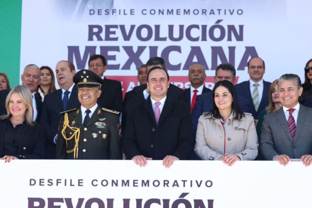 esde el municipio de Piedras Negras, el gobernador Manolo Jiménez Salinas encabezó los festejos conmemorativos al 114 aniversario de la Revolución MeexicanaPiedras Negras, Coahuila de Zaragoza; a 20 de noviembre de 2024.-Desde el Asta Monumental en la Gran Plaza de Piedras Negras, el gobernador Manolo Jiménez Salinas encabezó los festejos conmemorativos del 114 Aniversario del inicio de la Revolución Mexicana.“Coahuila es cuna de la Revolución, de la Constitución y del Ejército”, resaltó el gobernador.Junto al Comandante de la 47 Zona Militar, General José Luis Cruz Aguilar, la presidenta municipal de Piedras Negras, Norma Treviño Galindo, funcionarios estatales y municipales y representantes del Ejército Mexicano, el mandatario estatal asistió al Izamiento de la Bandera y protocolo de Ascensos de Mandos Militares.En su mensaje a los integrantes delEjército Mexicano y de la Guardia Nacional, el Gobernador de Coahuila destacó que esta ceremonia se realizó en el Asta Bandera más grande de México y es un día muy especial, porque hubo una serie de ascensos para elementos del glorioso Ejército que por muchos años han trabajado por el bien de nuestra Patria.Felicitó también a nombre del pueblo de Coahuila, a las familias de los militares por apoyarlos en su labor diaria de defender a la Patria y a contribuir a tener un país, estado y ciudad más seguros.“Estamos iniciando las celebraciones del 114 Aniversario de la Revolución Mexicana, un momento en la historia de México, donde Coahuila tuvo un papel fundamental”, aseveró el gobernador.“Hoy, como todos los días, honramos a Madero, a Carranza, por todo eso que se inició en 1910 y que hoy nos une a todos los mexicanos en este día tan especial, pero también en muchos otros días, a lo largo del año”, destacó. “Coahuila es cuna de la Revolución, Coahuila es cuna de la Constitución, pero también es cuna del Ejército, y por todo esto nos sentimos sumamente orgullosos de ser coahuilenses”, afirmó Manolo Jiménez Salinas.Expresó que “nos sentimos sumamente orgullosos de que esta gran Institución, el Ejército, haya nacido aquí en Coahuila”.Del mismo modo agradeció, a nombre de la población coahuilense, por todo lo que el Ejército hace por nuestro estado y por nuestro país. “Extienda este agradecimiento a nuestro General Ibarra, Comandante de la 11 Región Militar, que integra a Coahuila y a Chihuahua, y por supuesto también a nuestro General Secretario Ricardo Trevilla Trejo, que en su momento tuvo tareas aquí en nuestro estado y eso nos da mucho gusto porque conoce Coahuila”, dijo.Manolo Jiménez resaltó el apoyo otorgado para trabajar en el tema de la seguridad, el más importante, lo que contribuye a mantener la calidad de vida de los coahuilenses.Dijo que gracias al trabajo coordinado éste es el estado más seguro del Norte del país y cuenta con tres de las quince ciudades más seguras de México: Piedras Negras, Saltillo y Torreón.Lo que se traduce en que somos una tierra de oportunidades, en inversiones, con 95 mil millones de pesos de inversiones en 2024, miles de empleos generados para toda nuestra gente.“Y si nuestra gente vive segura, con oportunidades, vive con buenos servicios, se vive con calidad de vida”.Agregó que gracias al trabajo de todas y todos, al de todas las instituciones, al trabajo en equipo, con las y los ciudadanos, con las instituciones, iniciativa privada, con los organismos de la sociedad civil, hoy Coahuila sin duda, es uno de los mejores lugares de México para vivir con nuestras familias.Los ascensos tienen como finalidad cubrir las vacantes de personal militar, el cual fue entregado por sus familiares en reconocimiento a su esfuerzo y perseverancia.Además, los mandos militares recibieron condecoraciones por años de servicio prestados en las Fuerzas Armadas.DESFILE CÍVICO-DEPORTIVOEl Gobernador de Coahuila se trasladó posteriormente a la Presidencia Municipal, desde donde junto a autoridades de los 3 órdenes de Gobierno, presenció el Desfile Cívico-Deportivo con 39 contingentes y cerca de 3 mil participantes, entre ellos atletas coahuilenses. También, alumnos de escuelas de nivel básico, preparatoria y universidades, que desfilaron en carros alegóricos con vestimenta alusiva a la Revolución Mexicana, escenificaron pasajes de ese momento histórico e interpretaron tablas rítmicas. El lucido recorrido presenciado por cientos de familias constó también de la participación de Bandas de Guerra de instituciones educativas, así como elementos de las Fuerzas Armadas y corporaciones de Seguridad.El Desfile Conmemorativo del 114 Aniversario de la Revolución Mexicana culminó en la avenida Carranza, frente a la Escuela Primaria Ignacio Manuel Altamirano. Asistieron a los festejos conmemorativos, el General José Gregorio Pérez Juana, representante de la 11 Brigada de Policía Militar; Coronel Alejandro Meza Mendoza, Comandante del 12 Regimiento de Caballería Motorizado; Óscar Pimentel González, secretario de Gobierno; Luz Elena Morales Núñez, presidenta de la Junta de Gobierno del Congreso del Estado; Miguel Felipe Mery Ayup, presidente del Congreso del Estado; Federico Fernández Montañez, secretario de Seguridad Pública; Emanuel Garza Fishburn, secretario de Educación; Esther Quintana Salinas, secretaria de Cultura; Gabriel Elizondo Pérez, coordinador general de Mejora Coahuila; el diputado local Guillermo Ruiz Guerra; Sonia Villarreal Pérez, subsecretaria de Gobierno en la región Norte; Antonio Cepeda Licón, Director del Instituto Estatal del Deporte y representantes de diversos sectores de la población.