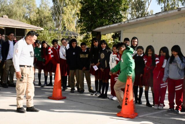 *Lerdo, 25 de noviembre 2024.- Por indicaciones precisas del Presidente Municipal Homero Martínez Cabrera, este lunes, la dirección de Tránsito y Vialidad en el Municipio de Lerdo, acudieron al plantel de nivel secundaria Benito Juárez, de Ciudad Juárez, para capacitar a los jóvenes acerca de la instalación de un Par Vial en el sector. Francisco de Hoyos Martínez, director de Tránsito y Vialidad en el Municipio, señaló que la instalación de esta estrategia vial, impulsada por el Alcalde Homero Martínez, tendrá un beneficio mayor para la movilidad diaria de los habitantes y ciudadanos que cada fin de semana acuden a la villa. Por lo cual, se ha impulsado un programa de capacitación a los estudiantes de la localidad, para que conozcan esta nueva medida, que implicará un nuevo trayecto para la salida de vehículos, y próximamente se dará a conocer más detallles entre los habitantes en general. La entrada de los conductores será por la calle Juárez y la salida de la villa será por la Av. Madero dando vuelta en calle Francisco Villa, para reincorporarse en el carril de la carretera federal rumbo a ciudad Lerdo. Durante la capacitación se atendió a grupos de nivel secundaria de segundo y tercer año, quienes conocieron el nuevo reglamento vial que se aplicará próximamente en la localidad, además de los riesgos de conducir bajo los efectos del alcohol.