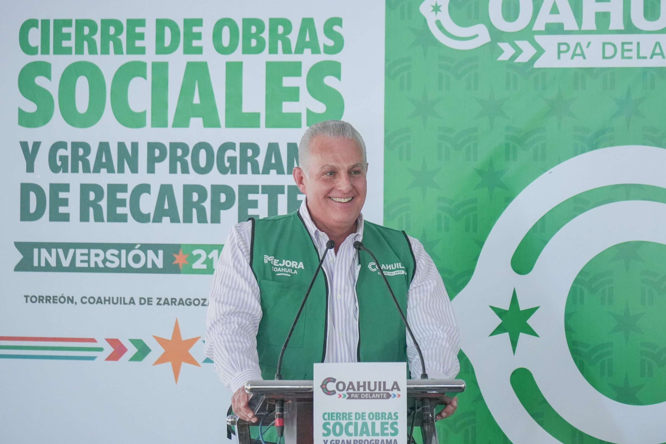 Torreón, Coahuila. A 26 de noviembre de 2024.La tarde de este martes, el gobernador del Estado Manolo Jiménez Salinas y el alcalde Román Alberto Cepeda González, cerraron en Torreón el programa de Obras Sociales y Recarpeteo, que se ejecutó con una inversión de 100 millones de pesos asignados a la rehabilitación de 240 cuadras de la ciudad. El Presidente Municipal dijo que tan solo en el presente año, en Torreón se pavimentaron cerca de 800 mil metros cuadrados en acciones conjuntas del Estado y Municipio, y adelantó que en 2025 anunciará un gran programa para continuar con este tipo de obras y así abatir el rezago histórico de la ciudad. En su mensaje, el Alcalde dijo que concluir el programa de Obras Sociales y Recarpeteo en el poniente es muy significativo, pues es el origen de Torreón, y destacó los resultados de estas acciones gracias a la coordinación entre autoridades. “Sabemos que la gente del poniente es muy aguerrida, gente de mucho trabajo, de mucho compromiso y gran apoyo. Este gran programa de pavimentación y recarpeteo muestra la coordinación de esfuerzos entre todas las áreas de Torreón con el Gobierno del Estado, los funcionarios públicos estatales, municipales, el Cabildo, diputados y secretarios, es la fortaleza y la unidad que tiene Coahuila”, mencionó.Cepeda González dijo que hasta el término de esta Administración y en la nueva que inicia en 2025, continuará el trabajo por Torreón con nuevos retos y con una ruta clara.“Iniciaremos otra Administración con un gran Gobernador que tiene un gran compromiso con Coahuila, con La Laguna y particularmente con Torreón. Sabemos a dónde vamos, qué queremos y con quién queremos acompañarnos”, señaló. Además, el edil reiteró su compromiso con las colonias del poniente, en donde continuará trabajando al igual que en el oriente, suroriente, en el primer y segundo cuadro de la ciudad. “Tengan la seguridad que desde esta trinchera, en una nueva etapa que empieza el primero de enero, habremos de estar aquí donde conocen perfectamente bien cómo trabajamos, donde saben que hay muchos retos por concluir pero no hemos dejado de estar aquí. Seguiremos trabajando por construir el Torreón que todos queremos, sabemos qué le pasa a cada área y sabemos con precisión qué tenemos que hacer, seguirán contando con mi Administración”, aseguró. El gobernador el Estado Manolo Jiménez Salinas, dijo que hoy concluye el Gran Programa de Pavimento que inició durante los primeros 100 días de su Administración. “Con estas más de 240 cuadras se atendió una gran petición de la gente, y en conjunto con Román y con el Municipio hemos hecho más proyectos como la gran obra del Giro Independencia. Concluye también el gran Programa de Obras Sociales A pasos de Gigante, que consta de obras de agua, electrificación, techos, cuartos, entre otros”, mencionó. El Gobernador dijo que el programa de recarpeteo representa una inversión de mil 300 millones de pesos en todo el Estado, y resaltó que hoy cerró con broche de oro en la Perla de La Laguna. “La gente de Torreón ha sido sumamente generosa con nosotros, y del tamaño de su confianza es mi compromiso con ustedes y sus familias”, refirió. Por su parte, Miguel Algara Acosta, secretario de Infraestructura, Desarrollo Urbano y Movilidad en el Estado, dijo que el programa alcanzó la meta de 210 mil metros cuadrados de nuevas vialidades con la rehabilitación de 240 cuadras, beneficiando a colonias como: Abastos, Ampliación Valle del Nazas, Gustavo Díaz Ordaz, Fidel Velázquez, Fraccionamiento Santa Sofía, Tierra y Libertad, La Merced II, Zaragoza Sur, Francisco Villa, Magdalenas, Santa María, Plan de San Luis, entre otras. Así como a los ejidos La Perla, Zaragoza, La Joya, La Merced y La Unión. Gabriel Elizondo Pérez, coordinador general de Mejora Coahuila, dijo que durante el primer año de la Administración, el Gobernador ha honrado la confianza de la gente cumpliendo compromisos con acciones, obras y programas, y destacó el trabajo en equipo con la Secretaría de Infraestructura y el Municipio. A nombre de las beneficiarias, Juanita Gaytán agradeció por el programa de pavimentación, el cual vendrá a mejorar la calidad de vida de las familias de Torreón. Estuvieron también presentes: Olivia Martínez Leyva, diputada local; Enrique Martínez y Morales, secretario de Inclusión y Desarrollo Social en el Estado; Eduardo Olmos Castro, secretario de Desarrollo Regional de La Laguna; Ignacio Covarrubias Cabello, subsecretario de Infraestructura Social de la Secretaría de Inclusión y Desarrollo Social; Xavier Herrera Arroyo, subsecretario de Asuntos Políticos y Sociales de la Secretaría de Gobierno; Hugo Dávila Prado, coordinador de Mejora en Torreón; Leticia Castaño Orozco, coordinadora de sector de Mejora Coahuila; y María Elena García Salazar, beneficiaria. – Torreón ¡Siempre Puede! –