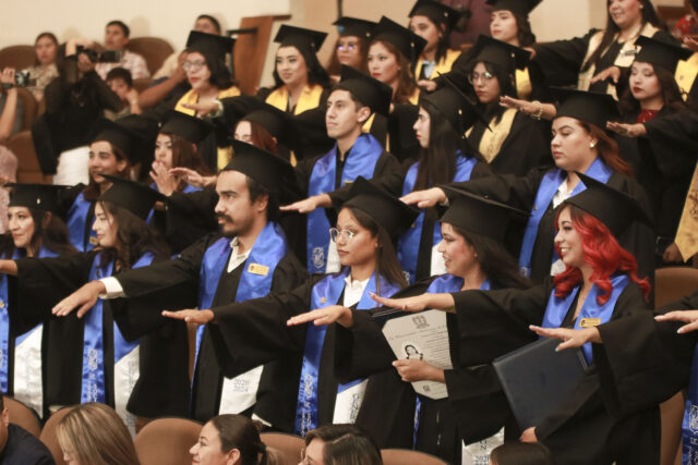 SALTILLO, Coahuila. 29 de noviembre de 2024. Para celebrar la conclusión de su educación superior, la Generación LXXII de la Facultad de Trabajo Social de la Universidad Autónoma de Coahuila, llevó a cabo su ceremonia de graduación, en la que recibieron el título que los avala como Trabajadores Sociales. El evento tuvo lugar en el Aula Magna José María Fraustro Siller, como padrinos de generación estuvieron presentes el rector de la máxima casa de estudios, Octavio Pimentel Martínez y el subdirector médico del Hospital Universitario de Saltillo, Roberto Eduardo Amador, acompañados por el director de la Facultad de Trabajo Social, César Arnulfo de León Alvarado, la secretaria administrativa, Laura Juárez Armendáriz y la docente Reyna Alicia Arriaga Bueno.En su mensaje el Rector, dijo a los jóvenes que tienen el compromiso con la sociedad de ser agentes de cambio, ya que el mundo necesita de ideas frescas, de perspectivas innovadoras y corazones comprometidos, pues la juventud es el motor que mueve al mundo, al tiempo que los conminó a ser solidarios, a cambiarle la vida a alguien y decirle a esa persona que le cambie la vida a alguien más para así crear un círculo virtuoso que beneficie a la sociedad.Por su parte, el subdirector médico del Hospital Universitario de Saltillo, Roberto Eduardo Amador, destacó que en el nosocomio ha pasado gente de la Facultad de Trabajo Social que ha dejado huella, por ello, enfatizó que es fundamental reconocer la importancia de esta carrera.Mientras que, el director de la Facultad de Trabajo Social, César Arnulfo de León Alvarado, felicitó a las y los jóvenes por concluir sus estudios de licenciatura, pues esto habla de su gran esfuerzo y dedicación, por lo que los invitó a desempeñar la profesión con responsabilidad, calidez humana y trato digno. A nombre de la generación, la alumna Grecia Cisneros Álvarez, ofreció un mensaje, durante el cual señaló que al graduarse están por vivir una nueva etapa como profesionistas, por lo que deben estar listos para enfrentar los retos que se presenten con empatía y calidad humana, ya que servir a los demás es el trabajo más nombre del ser humano.Durante la ceremonia se entregaron reconocimientos a los alumnos con mejor promedio, en primer lugar, Adriana González Hernández; segundo lugar, Iris Guadalupe de León y en tercer lugar Johana Giselle Lara.