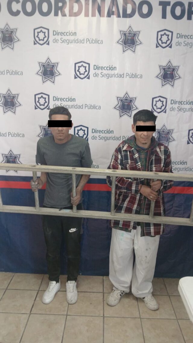 Elementos de la Dirección de Seguridad Pública Municipal de Torreón detuvieron por el presunto delito de robo a casa habitación a Alfredo ‘N’ de 33 años, el 20 de enero a las 00:54 horas en la colonia Nueva Aurora. La sala de radio envió una unidad a un domicilio del sector donde los agentes fueron recibidos por Brandon ‘N’ de 30 años, quien señaló que los 2 hombres brincaron la azotea y llevaban una escalera de su propiedad, realizando el llamado de auxilio. Fueron ubicados metros más adelante notificando su detención y puesta a disposición del Ministerio Público por los delitos que le resulten.