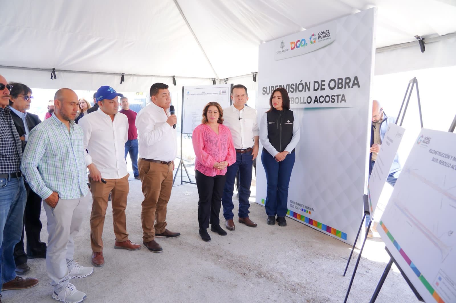 *Con el objetivo de supervisar los avances de la obra de reconstrucción del bulevar Rebollo Acosta, la Presidenta Municipal Leticia Herrera Ale y el Gobernador del Estado de Durango, Esteban Villegas Villarreal, acudieron a revisar la calidad de los trabajos realizados hasta este momento.Durante la supervisión, estuvieron presentes miembros de la Mesa Directiva de la Central de Abastos de Gómez Palacio, quienes expresaron su gratitud al Gobernador del Estado y a la Presidenta Municipal, por esta obra tan importante, la cual fue solicitada por los comerciantes del sector y por la población en general, desde hacía ya mucho tiempo.Juan Salazar Reyes, titular de Obras Públicas en el municipio, detalló que el proyecto de reconstrucción y modernización del bulevar Rebollo Acosta incluye la restauración de la base hidráulica, así como la construcción de guarniciones, semaforización, señalización y por supuesto la colocación de más de 99 mil metros cuadrados de pavimento. Así como la instalación de infraestructura de drenaje sanitario, pluvial y un sistema de bombeo del agua de lluvia hacia el Canal de Sacramento que evitará que vuelvan a generarse los encharcamientos que históricamente se presentaban a lo largo del bulevar.Además, la alcaldesa y el gobernador pudieron constatar el avance alcanzado por el Sistema Descentralizado de Agua Potable y Alcantarillado (Sideapa), donde ya fue concluida la construcción de drenaje sanitario en la colonia Hijos de Campesinos, y la instalación de un nuevo drenaje pluvial en el cruce con el bulevar Carlos Herrera, así como la construcción del sistema de captación del drenaje pluvial a la altura del Acueducto, desde donde se enviará el agua de lluvia hasta el Canal de Sacramento.La Alcaldesa Leticia Herrera Ale expresó su profundo agradecimiento al Gobernador Esteban Villegas Villarreal por su constante apoyo, destacando: “Sin su apoyo, nada de esto sería posible. Su compromiso con nuestro municipio se manifiesta en cada obra, cada acción y cada beneficio para nuestra gente. Hoy no solo supervisamos una obra más, sino la más importante de esta administración: la reconstrucción integral del bulevar Rebollo Acosta, una obra que, sin duda, transformará la movilidad del municipio”.“Este gobierno es un gobierno que no solo promete, sino que cumple con su palabra; por ello continuaremos avanzando con más obras que mejoren la calidad de vida de nuestra gente. Gracias Gobernador, por caminar a nuestro lado y ayudarnos a recuperar el brillo de nuestro Gómez Palacio”, concluyó la Presidenta Municipal Leticia Herrera Ale.