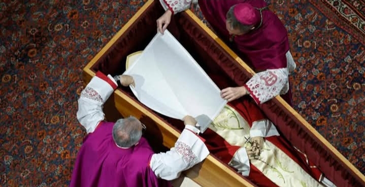 Se hará en presencia del camarlengo, del arcipreste de la Basílica de San Pedro, el cardenal que era secretario de Estado, el vicario para la Diócesis de Roma, el sustituto de la Secretaría de Estado, el regente de la Casa Pontificia, el Limosnero de Su Santidad, el Vice Camerlengo, los canónigos de la Basílica de San Pedro, el maestro de las Celebraciones Litúrgicas, los ceremonieros pontificios, y los parientes del difunto papa.Todos los clérigos vestirán hábito coral.Al inicio, el camarlengo se dirigirá a los presentes con unas palabras. Tras ello, S.E.R. Mons. Diego Ravelli, maestro de las Celebraciones Litúrgicas leerá el texto de una «Rogitio», un documento en el que se narra la vida del pontífice.Cuando concluya la lectura, se cantará el Cántico de Zacarías, el Benedictus, para recordar que nos visitará el sol que nace de lo alto para iluminar a los que viven en las tinieblas y en sombra de muerte. Después, el Camarlengo rezará una oración.Concluida la oración, el maestro de las Celebraciones Litúrgicas del Santo Padre, colocará un velo de seda blanca sobre el rostro del difunto. Después, el camarlengo aspergeará el cuerpo del papa. Tras ello, el maestro de las Celebraciones introducirá en el ataúd una bolsa con monedas acuñadas durante el pontificado de Francisco y un tubo en el que se enrolla la Rogitio que está sellado con el sello de la Oficina de las Celebraciones Litúrgicas. Después, se cerrará el ataúd mientras se canta el salmo 41.El ataúd de zinc se cerrará y en su tapa estará grabada la cruz, el escudo del papa Francisco y una placa con el nombre del pontifice, la duración de su vida y de su ministerio petrino. El féretro de zinc será soldado y se imprimirán los sellos del cardenal camarlengo, de la Prefectura de la Casa Pontificia, de la Oficina de las Celebraciones Litúrgicas del Sumo Pontífice y del Capítulo Vaticano.Finalmente, el féretro de madera será cerrado. En la tapa de éste estará grabada una cruz y el escudo de Francisco.