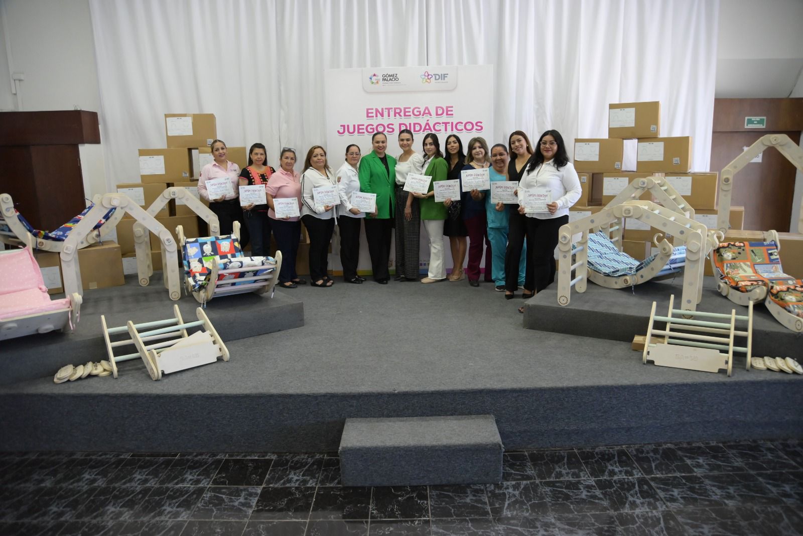 La titular del DIF agradeció a Fundación Chilchota, pues este material fue donado de manera previa por esta fundación.Como parte del compromiso por fortalecer el desarrollo de las niñas y niños gomezpalatinos el Ayuntamiento de Gómez Palacio, a través del Sistema para el Desarrollo Integral de la Familia (DIF), llevo a cabo la entrega de 60 juegos didácticos estilo Montessori a diversas instituciones educativas y organizaciones civiles que trabajan en el municipio a favor de la educación de los menores.Este material fue donado generosamente al DIF Gómez Palacio por Fundación Chilchota, así lo dio a conocer Brenda Calderón Carrete, Directora del DIF municipal, quien a nombre de la Presidenta Municipal Leticia Herrera Ale y de todos los beneficiarios, agradeció a los representantes de Fundación Chilchota, quien a lo largo de toda esta administración ha demostrado de manera permanente su interés en el desarrollo de la niñez gomezpalatina.Al evento de entrega de estos materiales didácticos con valor superior a los 100 mil pesos, acudieron los representantes de 10 instituciones y asociaciones civiles beneficiadas, que diariamente atienden a niñas y niños del municipio; ellos serán los encargados de garantizar que este material se use adecuadamente para reforzar conocimientos y habilidades en los menores.Calderón Carrete subrayó que esta donación tiene como propósito fortalecer el trabajo de las instituciones con herramientas que fomenten el desarrollo integral de los pequeños, especialmente en áreas como equilibrio, coordinación, imaginación y creatividad.Los juegos incluyen mobiliario especializado como Torres de Aprendizaje y Balancines Luzu con colchonetas, diseñados para niñas y niños de entre 1 y 5 años. Con estos recursos se promueve el aprendizaje activo, la autonomía y el desarrollo cognitivo, alineado con la metodología Montessori que privilegia el juego como medio de exploración y enseñanza.Entre las instituciones beneficiadas se encuentran Estancia Infantil Provida Plena A.C., Casa de Restauración ARCA A.C Comunidad Asperger Gómez Palacio A.C., Ludoteca IMM PRODEM, estancias infantiles del DIF en Villa Nápoles, Tierra Blanca y Felipe Ángeles, Casa Hogar Región Laguna, Centro de Convivencia de Psicoterapia y la Fundación Te Quiero Ver Feliz.Con esta acción, el DIF Gómez Palacio reafirma su compromiso con la niñez y reconoce el valor de las alianzas con la sociedad civil y la iniciativa privada para generar un impacto positivo en las futuras generaciones.