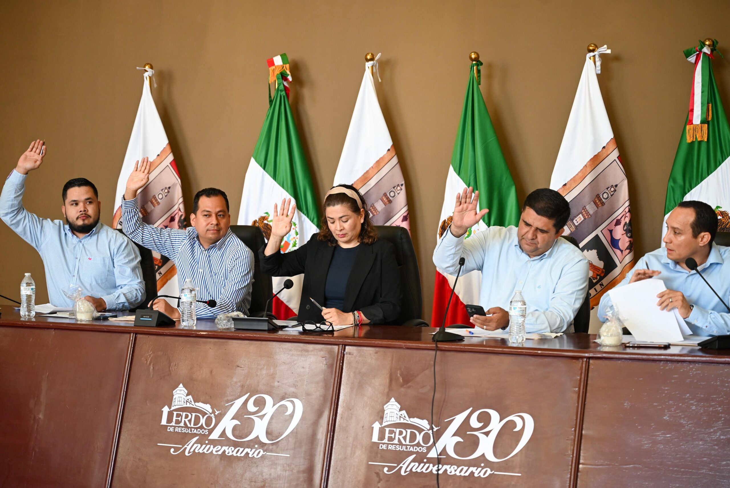 *Lerdo, 28 de agosto 2025.- Este 28 de agosto, a las 8:39 hrs. se desarrolló la Sesión Ordinaria De Cabildo Acta No. 134, y última sesión de la administración 2022-2025, en el lobby del Teatro Hermila Galindo, donde se autorizó que el Polideportivo sea el recinto oficial para la toma de protesta de la Presidenta Electa Susy Torrecillas.Además de aprobar la el orden del día de este jueves, se aprobaron las actas de Cabildo Sesión Ordinaria No. 133, Sesión Extraordinaria No. 023 y Sesión Solemne 007; así como el dictamen emitido por la Comisión de Hacienda, de otorgar el beneficio de Considerado a 28 trabajadores activos que cumplen con lo establecido en la cláusula 31 del Contrato Colectivo de Trabajo vigente, oficio presentado por el departamento de Recursos Humanos; y el dictamen emitido por la Comisión De Desarrollo Económico, autorizando el cambio de concesión del local C-9 del interior del Mercado Donato Guerra, con giro de tienda de belleza y productos naturales a «materias primas».También se aprobaron los dictámenes emitidos por la Comisión de Obras Públicas y Desarrollo Urbano, autorizando la subdivisión en dos fracciones de una propiedad en la avenida Aquiles Serdán, colonia Centro, con superficie total de 232 m², y una propiedad en la calle Zacatecas, colonia Las Flores, que consta de una superficie total de 375.90 m². En seguida, el el H. Cabildo autorizó declarar el «Polideportivo 2024» como el recinto oficial para la realización de la Sesión Pública y Solemne de «Toma de Protesta» de la Ing. Susy Carolina Torrecillas Salazar como Presidenta Municipal de la Administración 2025-2028 y la instalación del H. Cabildo 2025-2028, el día domingo 31 de agosto del presente año, en punto de las 18:00 horas, con fundamento en los artículos 30, 31 y 32 de la Ley Orgánica del Municipio Libre del Estado de Durango.En Asuntos Generales, el Presidente Municipal Homero Martínez Cabrera compartió que “los resultados que hemos podido dar en estos últimos tres años, pues han sido gracias al trabajo colegiado de este Honorable Ayuntamiento, de este Cabildo… Mi agradecimiento total a todas y todos ustedes, aunque seamos de diferentes colores partidistas el bien supremos se llama Lerdo. A todos, gracias” se dirigió a las y los regidores.También agradeció el voto de confianza ciudadano, lo que ha permitido entregar buenas cuentas a las y los lerdenses. Y señaló que es fundamental que la Presidenta Municipal continúe gestionando y dando celeridad a diferentes temas, como la segunda etapa del Sistema de Monitoreo y Vigilancia Municipal (SIMOM), la digitalización de pago para más servicios, el hospital de especialidades IMSS, entre otros temas.