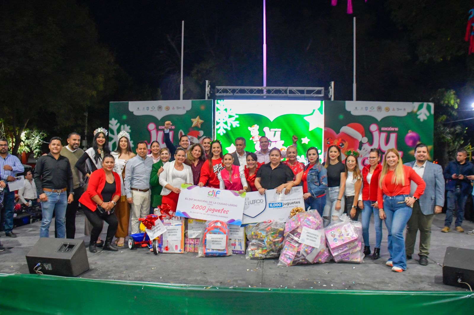 *Lerdo, Durango, 22 de noviembre de 2025.– En un ambiente totalmente familiar, lleno de música, baile y la participación de instituciones educativas de la Laguna de Durango, con el respaldo de los municipios de Lerdo, Gómez Palacio, Mapimí y Cuencamé, se logró superar la meta del Juguetón 2025, alcanzando un total de 67 mil 447 juguetes.El arranque del evento tuvo lugar en el Parque Victoria de Lerdo, contando con la presencia de Marisol Rosso, presidenta estatal del DIF Durango; Betzabé Martínez, alcaldesa de Gómez Palacio; Marina De Llano, de Mapimí; y Edith Orozco, de Cuencamé, acompañadas por la presidenta municipal de Lerdo, Susy Carolina Torrecillas Salazar, anfitriona del evento.Durante su intervención, la presidenta honoraria del DIF estatal, Marisol Rosso, reconoció el apoyo del municipio de Lerdo y destacó la suma de esfuerzos de ciudades vecinas. Señaló la importante participación del Instituto Tecnológico Superior de Lerdo y de la Universidad Juárez del Estado de Durango, instituciones que fueron clave para superar la meta de este tradicional evento navideño.Por su parte, la presidenta Susy Torrecillas celebró el entusiasmo de las familias que acudieron a donar, subrayando que cada aportación contribuirá a llevar sonrisas a miles de niñas y niños esta Navidad. Asimismo, reconoció el respaldo de los grupos artísticos y voluntarios que ambientaron la jornada.En la recta final del Juguetón 2025, las presidentas de Mapimí y Cuencamé realizaron importantes aportaciones de juguetes, sumándose al espíritu solidario del evento.En presencia de las autoridades municipales y estatales, la presidenta Susy Carolina Torrecillas y el Sistema DIF Lerdo realizaron una gran donación de 8 mil juguetes, que serán entregados durante la temporada decembrina para brindar alegría a niñas y niños de la región.Finalmente, Torrecillas Salazar afirmó que “cuando se trabaja con el corazón, las metas se cumplen”, destacando que esta 16ª edición se vivió con gran entusiasmo y participación ciudadana.